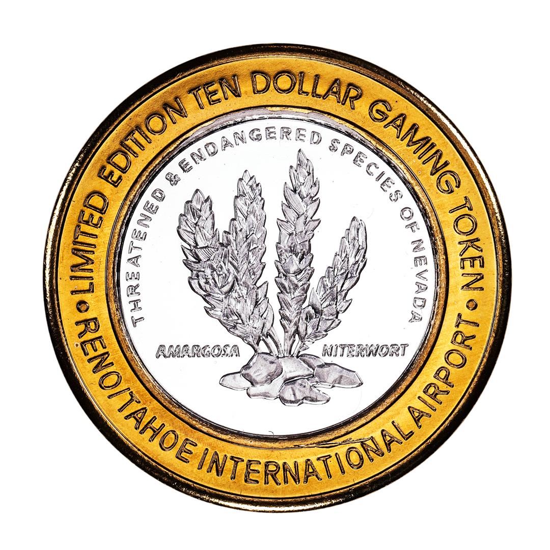 One .999 Fine Silver Reno Tahoe International Airport $10 Limited Edition Gaming Token.