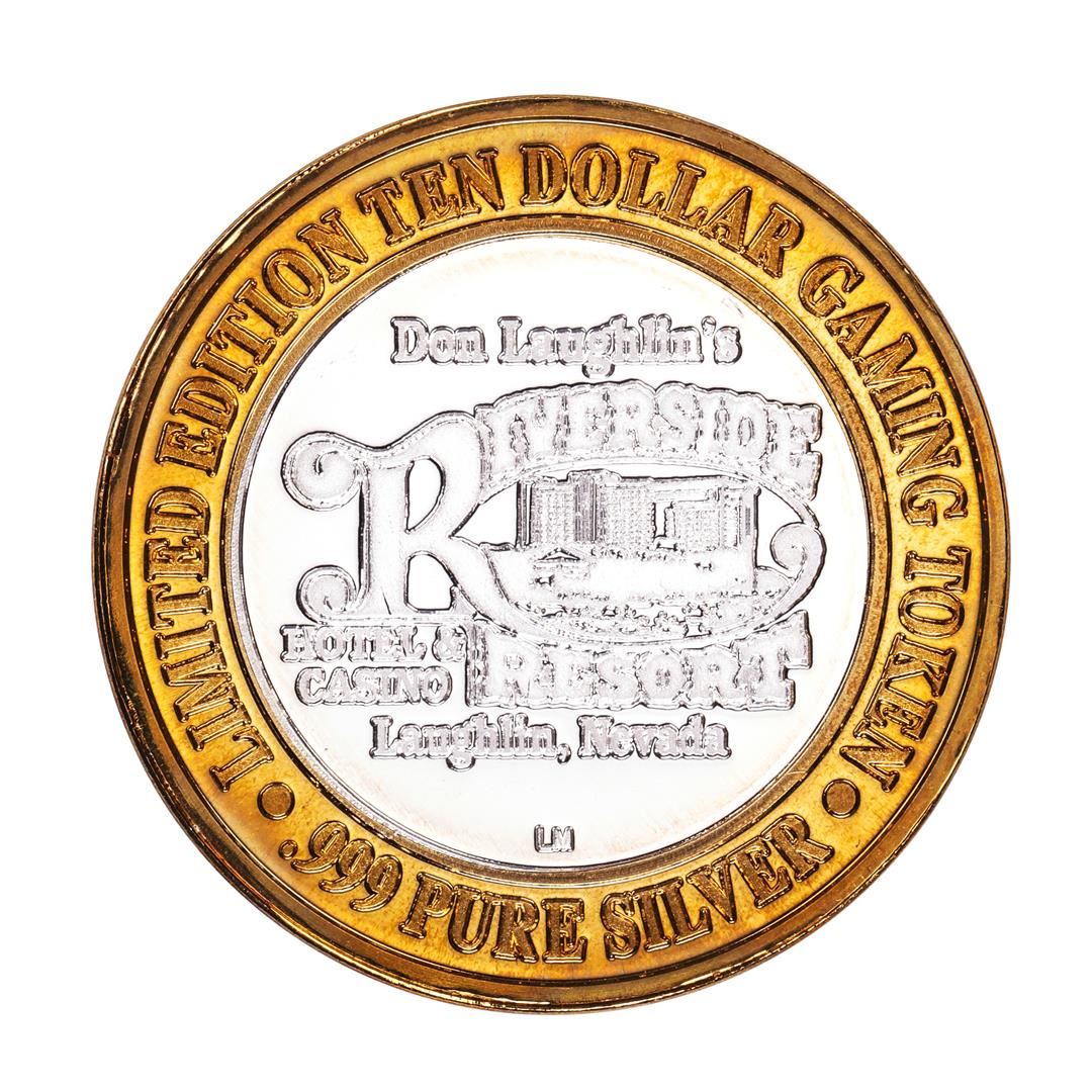 One .999 Fine Silver Riverside Casino Laughlin, NV $10 Limited Edition Gaming Token.