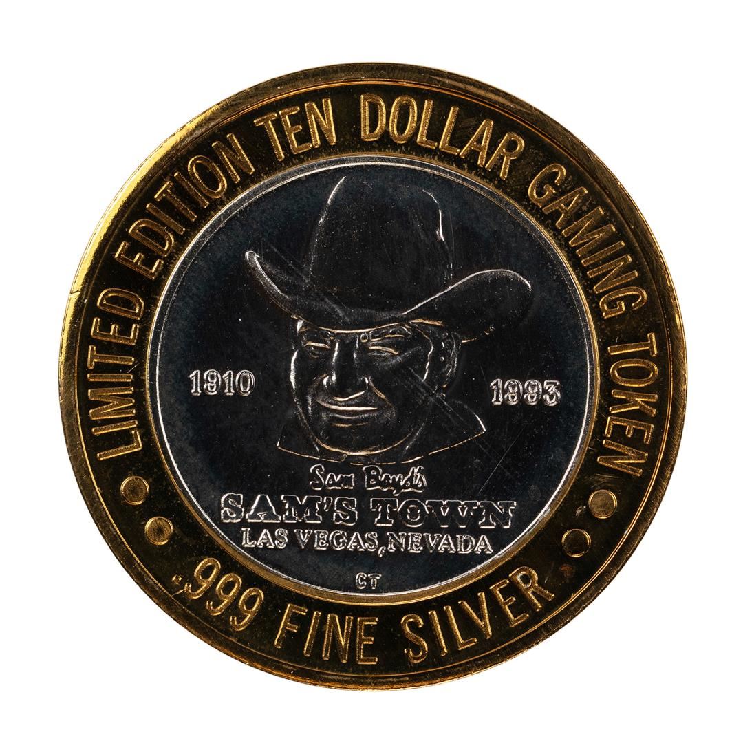 One .999 Fine Silver Sam's Town Casino Las Vegas $10 Limited Edition Gaming Token.