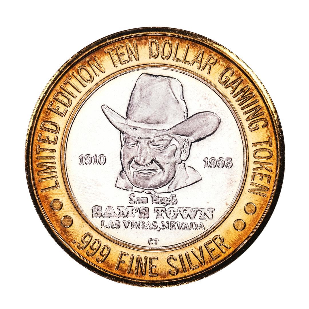 One .999 Fine Silver Sam's Town Casino Las Vegas $10 Limited Edition Gaming Token.