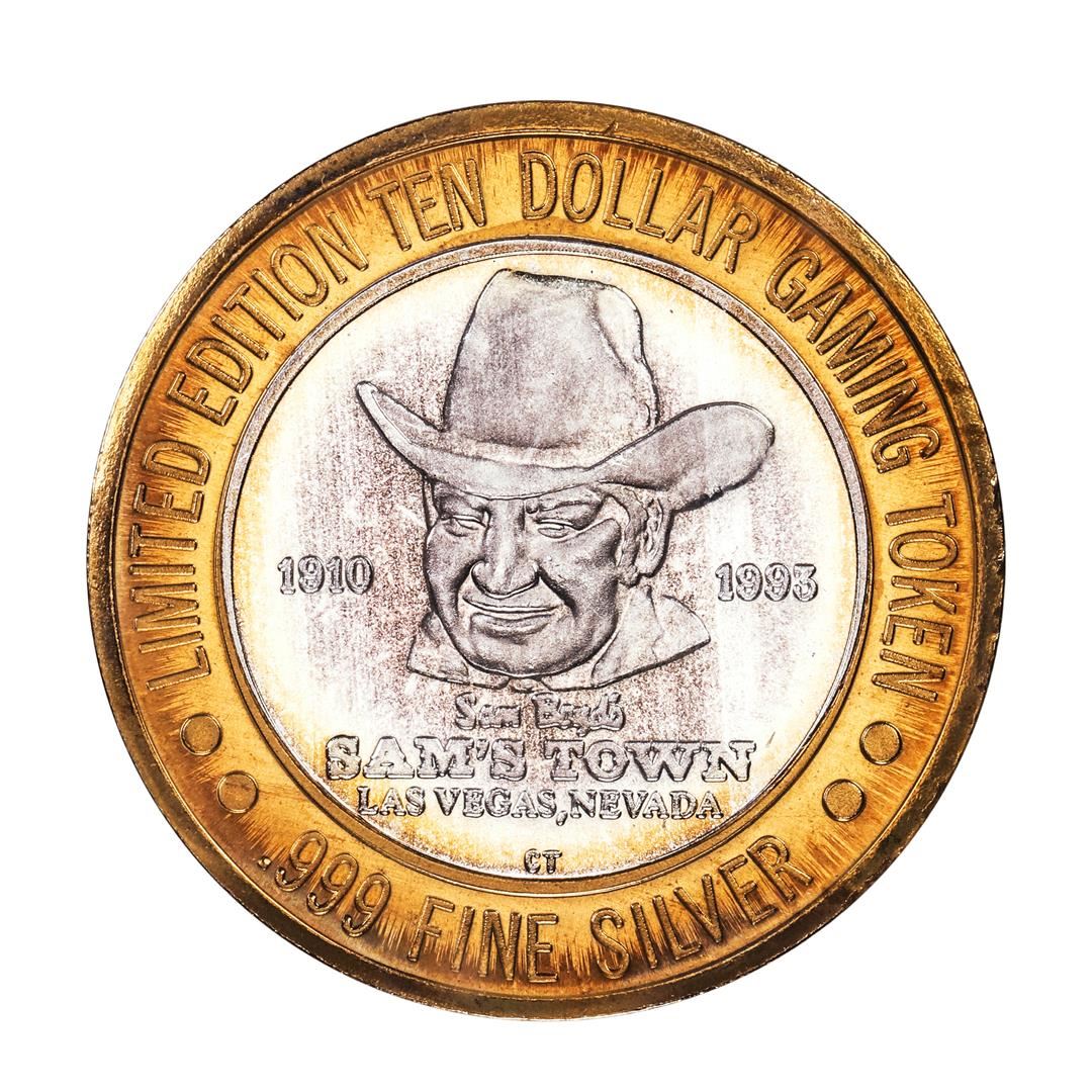 One .999 Fine Silver Sam's Town Casino Las Vegas $10 Limited Edition Gaming Token.