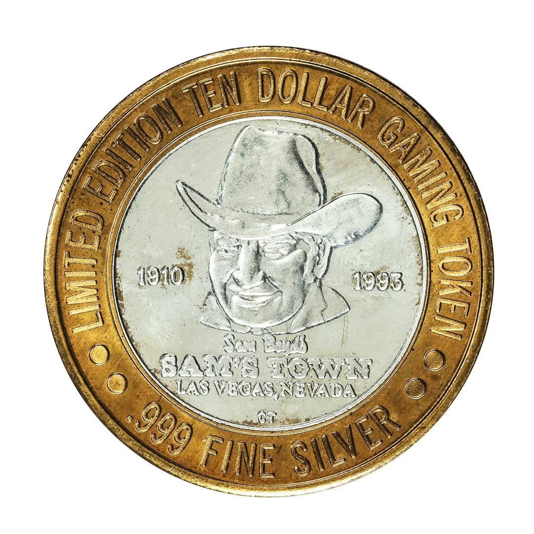 One .999 Fine Silver Sam's Town Casino Las Vegas $10 Limited Edition Gaming Token.
