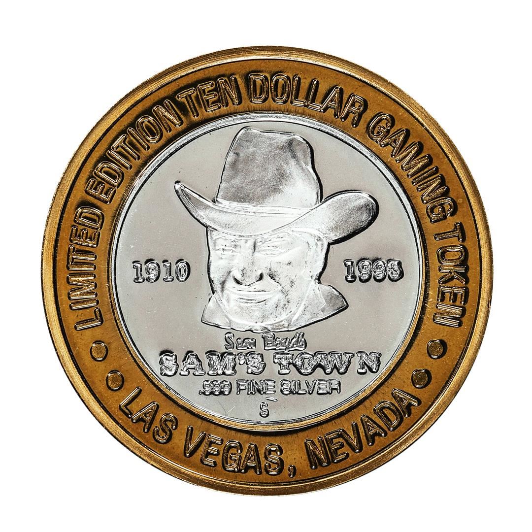 One .999 Fine Silver Sam's Town Casino Las Vegas $10 Limited Edition Gaming Token.