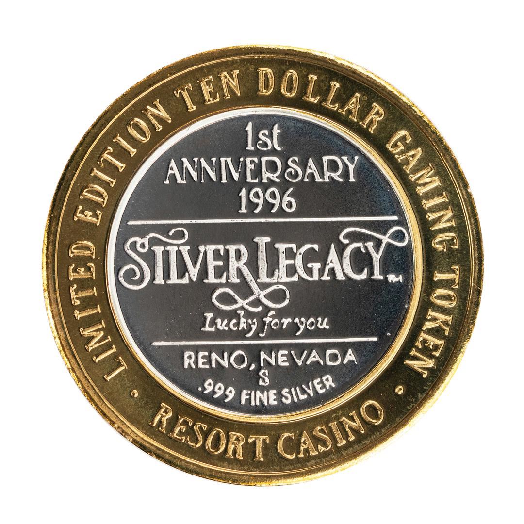 One .999 Fine Silver Silver Legacy Reno, Nevada $10 Limited Edition Gaming Token.