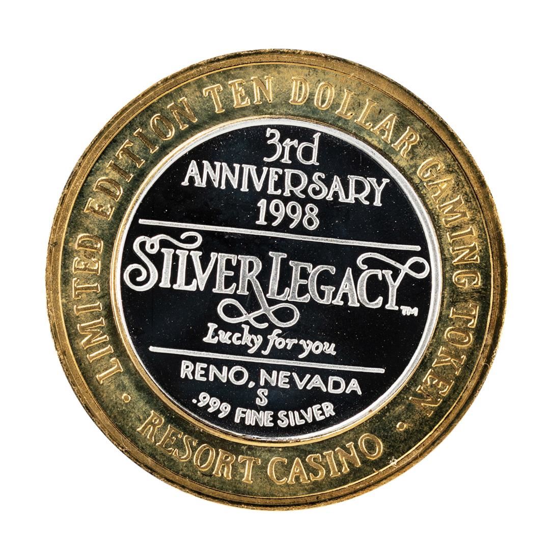 One .999 Fine Silver Silver Legacy Reno, Nevada $10 Limited Edition Gaming Token.