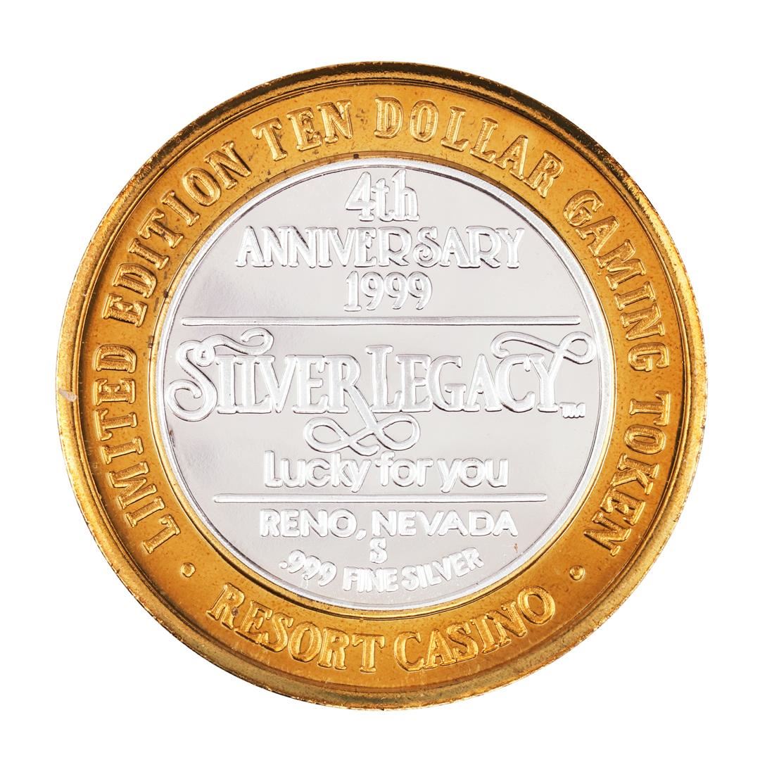 One .999 Fine Silver Silver Legacy Reno, Nevada $10 Limited Edition Gaming Token.