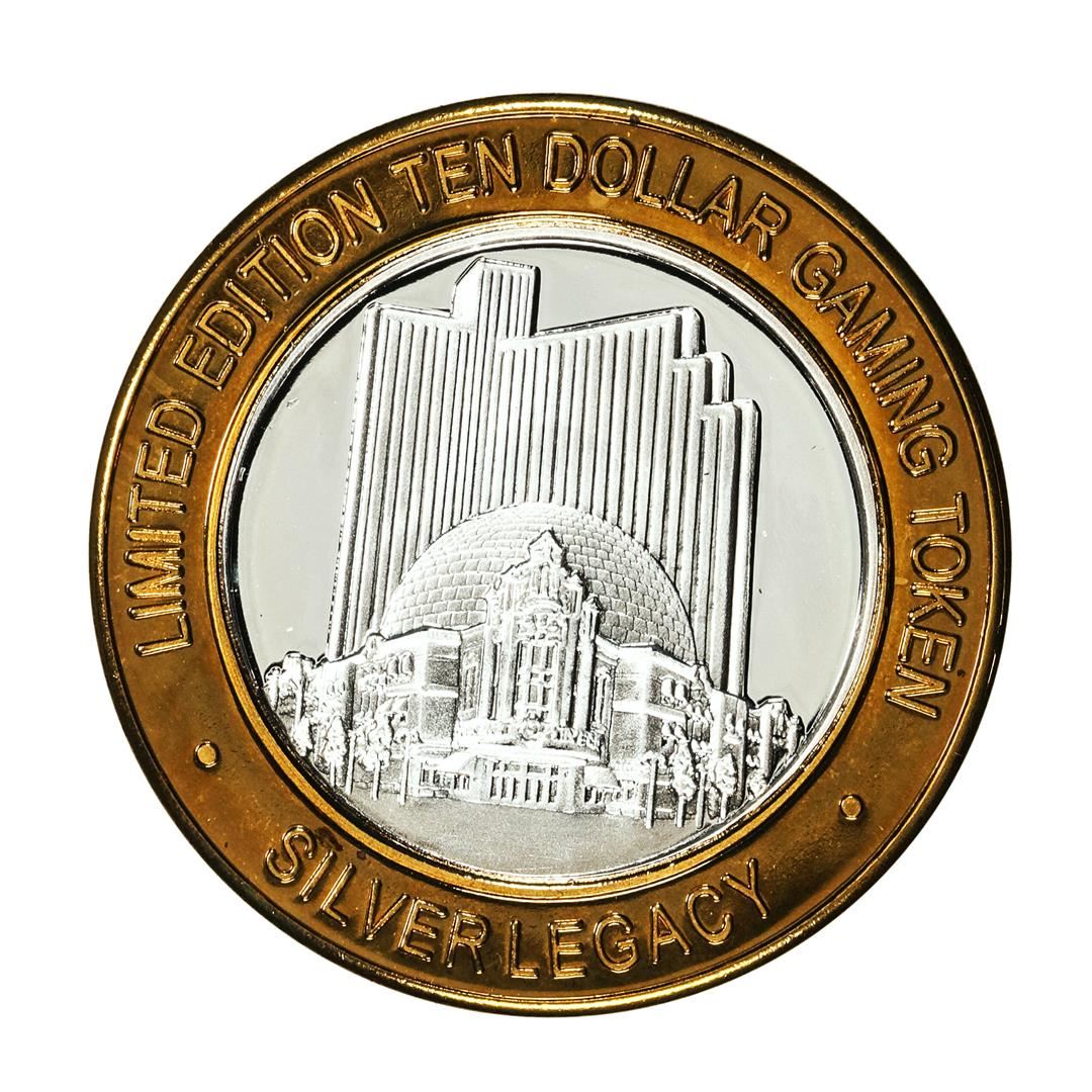 One .999 Fine Silver Silver Legacy Reno, Nevada $10 Limited Edition Gaming Token.