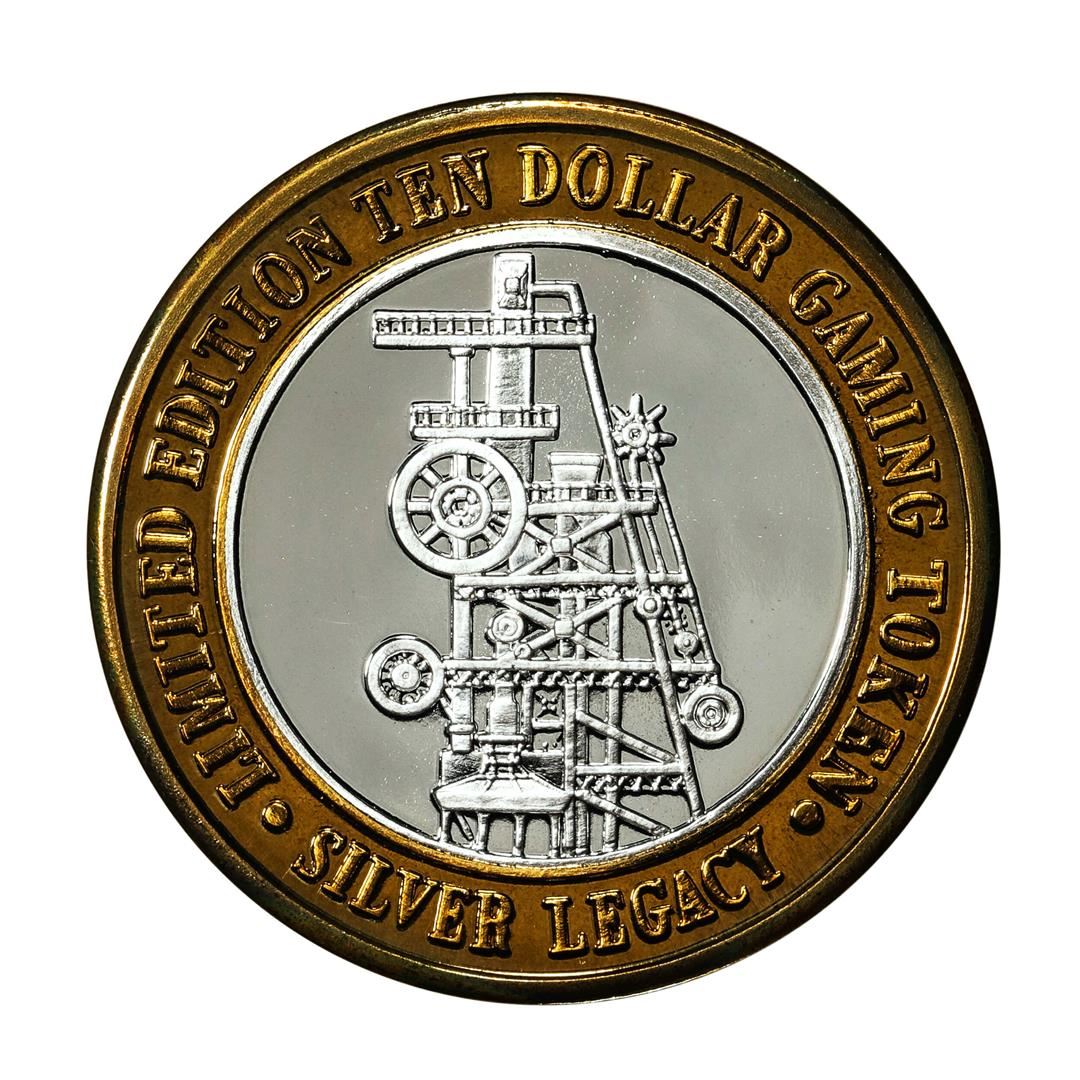 One .999 Fine Silver Silver Legacy Reno, Nevada $10 Limited Edition Gaming Token.