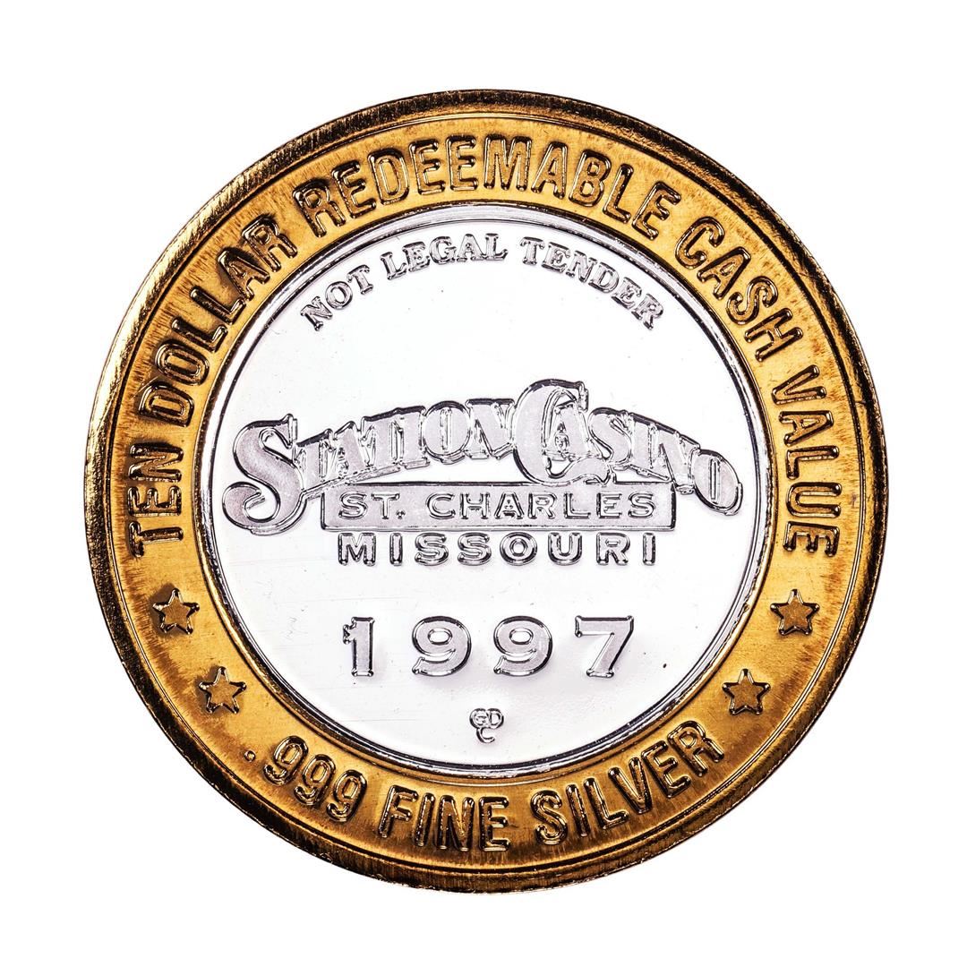 One .999 Fine Silver Station Casino St Charles Missouri $10 Limited Edition Gaming Token.