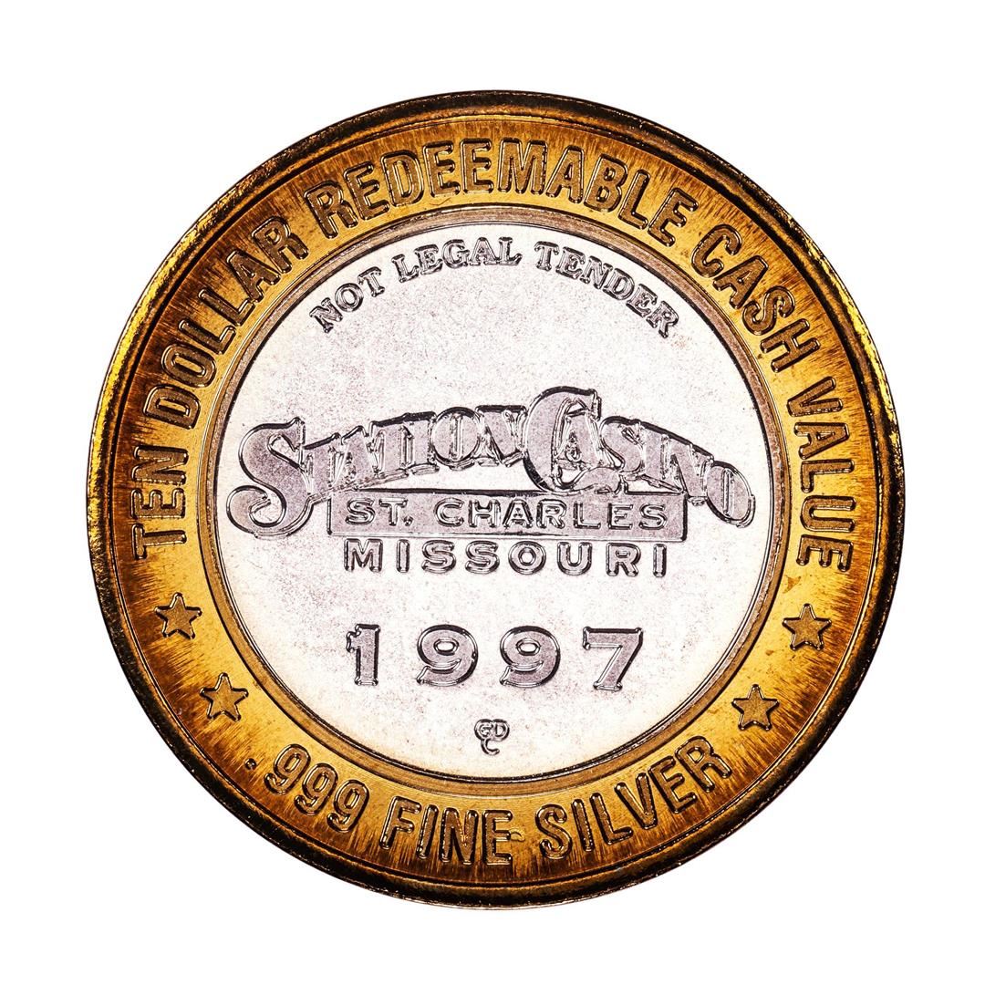 One .999 Fine Silver Station Casino St Charles Missouri $10 Limited Edition Gaming Token.
