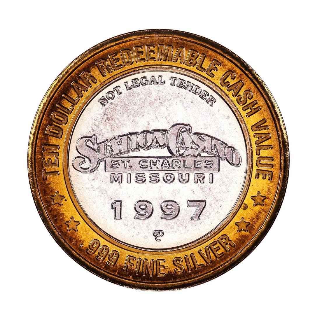 One .999 Fine Silver Station Casino St Charles Missouri $10 Limited Edition Gaming Token.