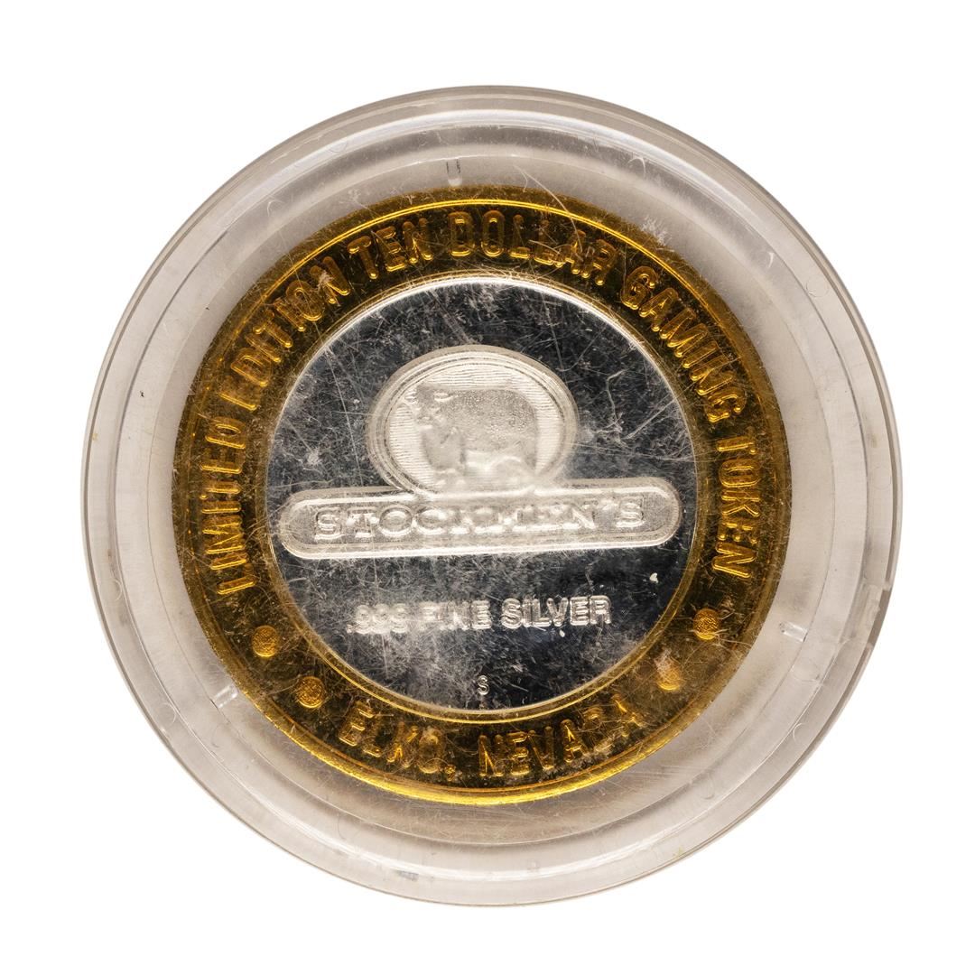 One .999 Fine Silver Stockmen's Elko, Nevada $10 Limited Edition Gaming Token.