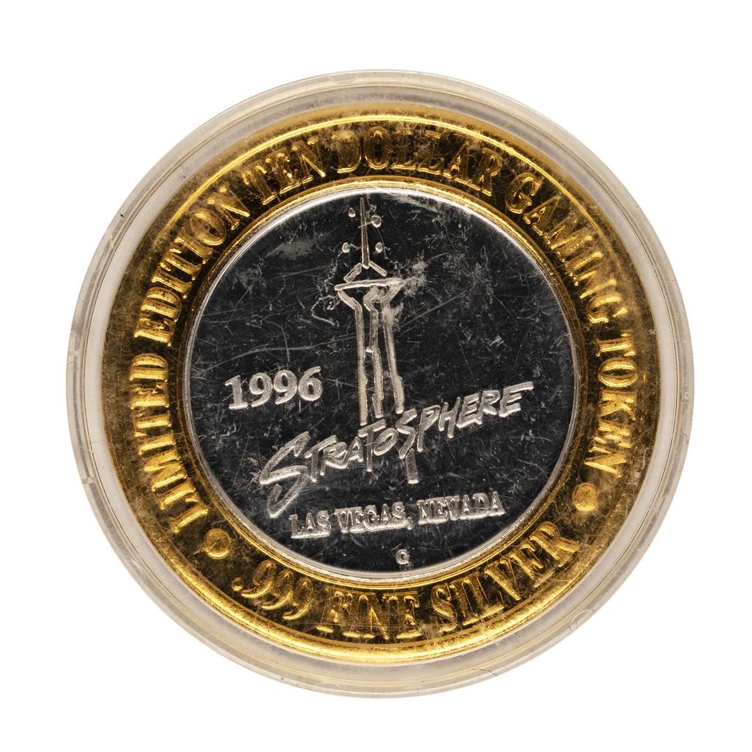 One .999 Fine Silver Stratosphere Las Vegas, Nevada $10 Limited Edition Gaming Token.