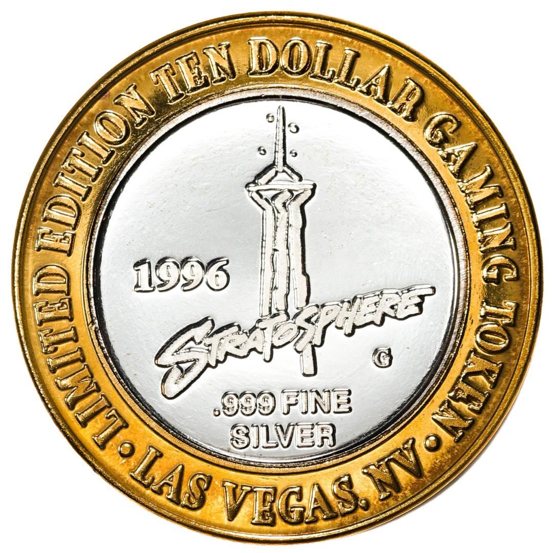 One .999 Fine Silver Stratosphere Las Vegas, Nevada $10 Limited Edition Gaming Token.