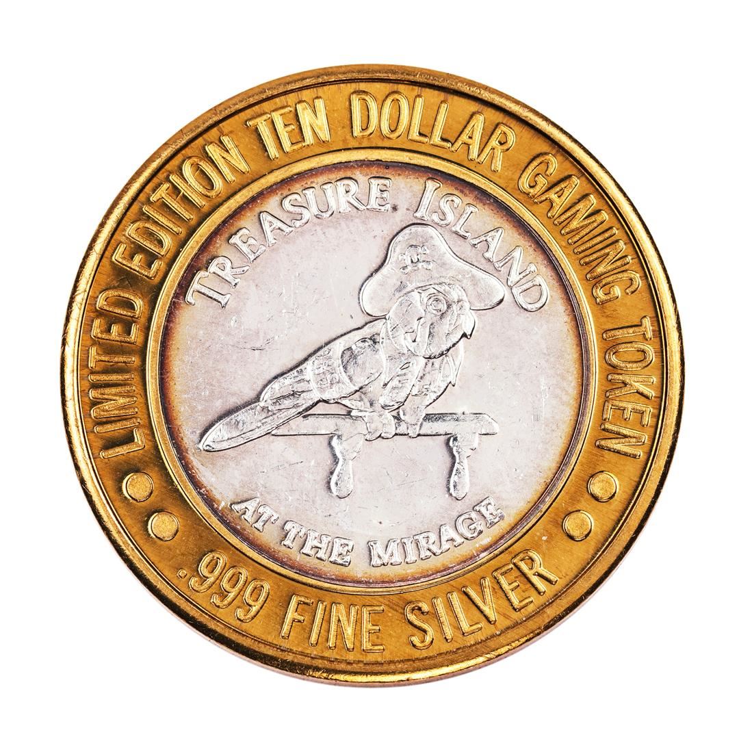 One .999 Fine Silver Treasure Island Las Vegas, Nevada $10 Limited Edition Gaming Token.