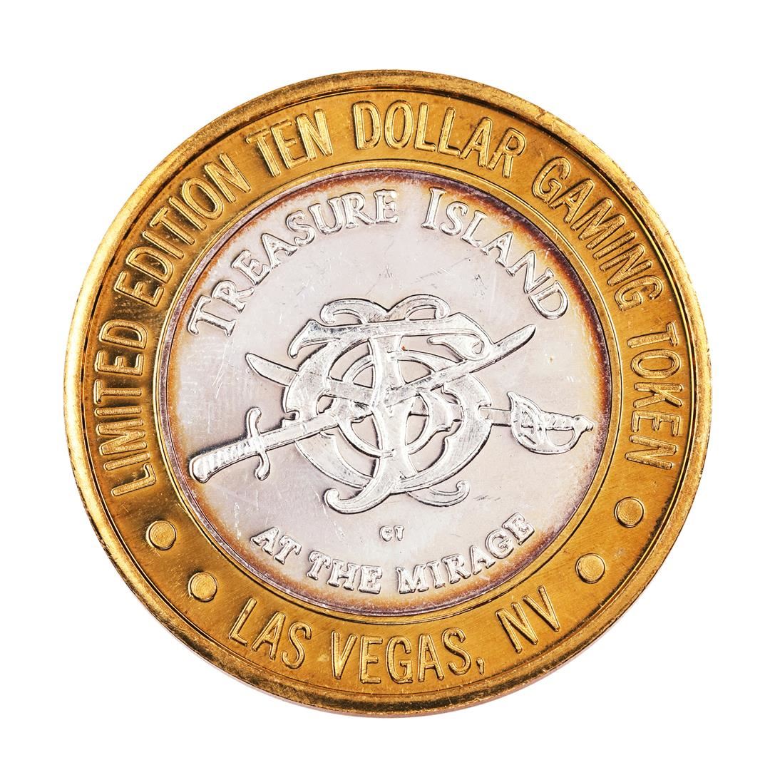 One .999 Fine Silver Treasure Island Las Vegas, Nevada $10 Limited Edition Gaming Token.