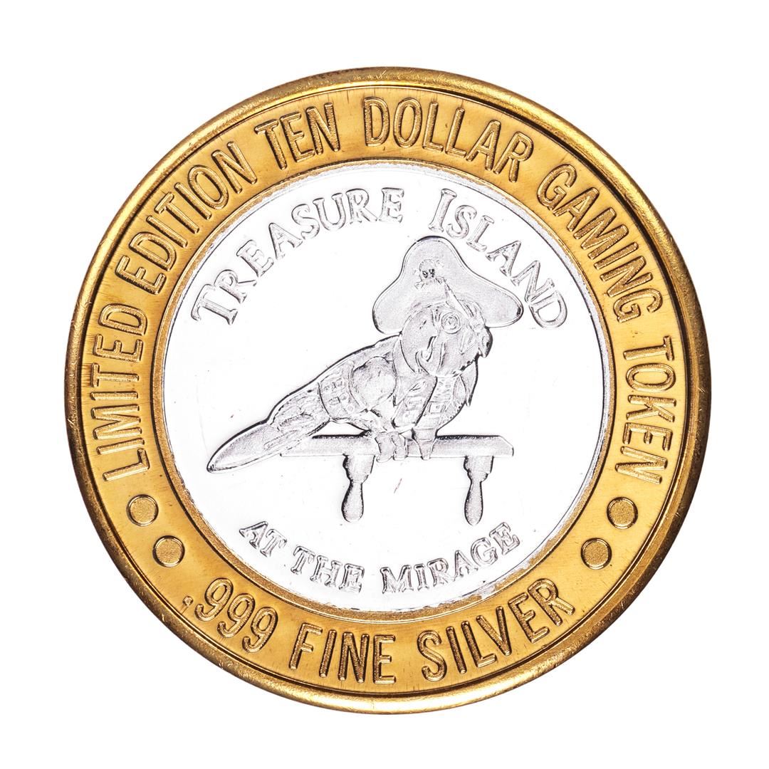 One .999 Fine Silver Treasure Island Las Vegas, Nevada $10 Limited Edition Gaming Token.