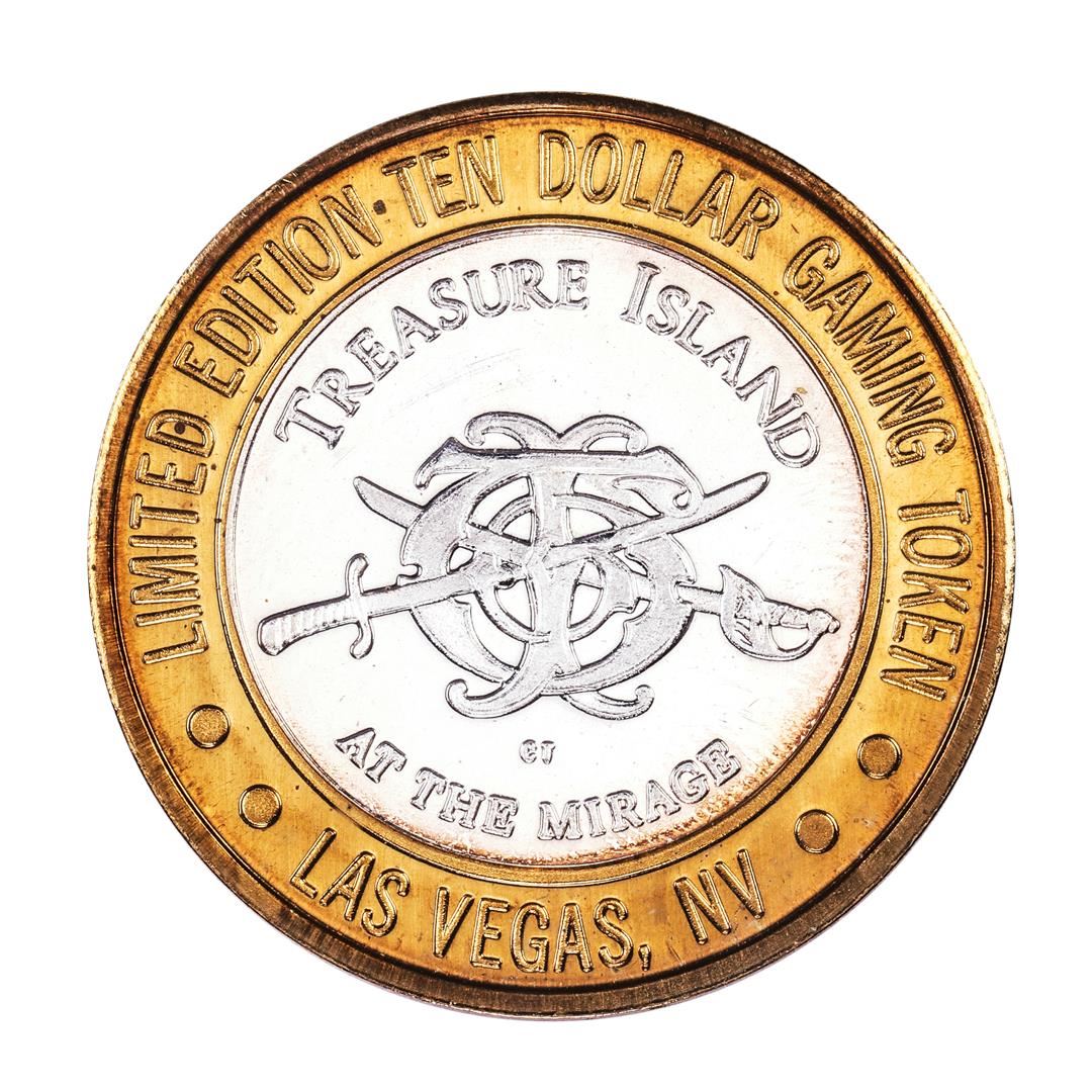 One .999 Fine Silver Treasure Island Las Vegas, Nevada $10 Limited Edition Gaming Token.