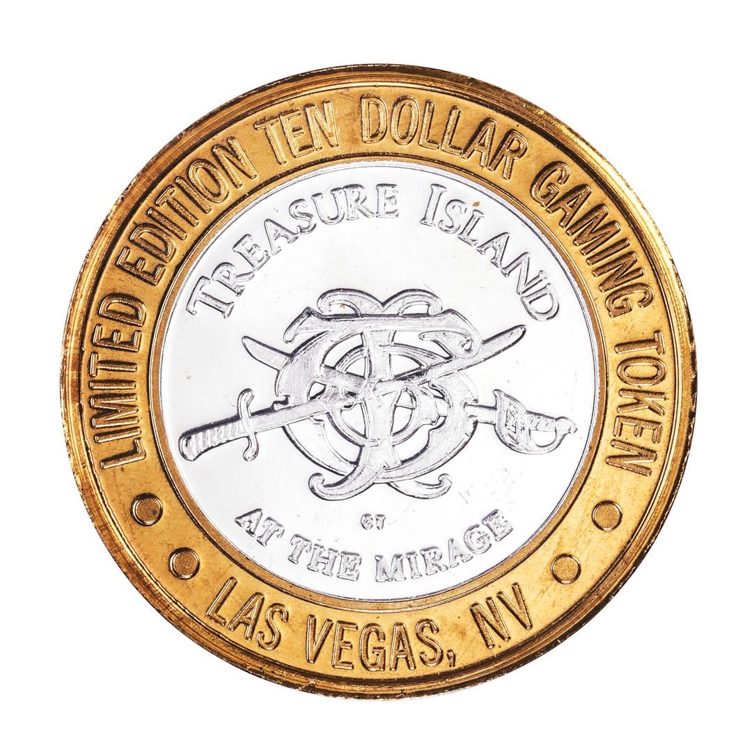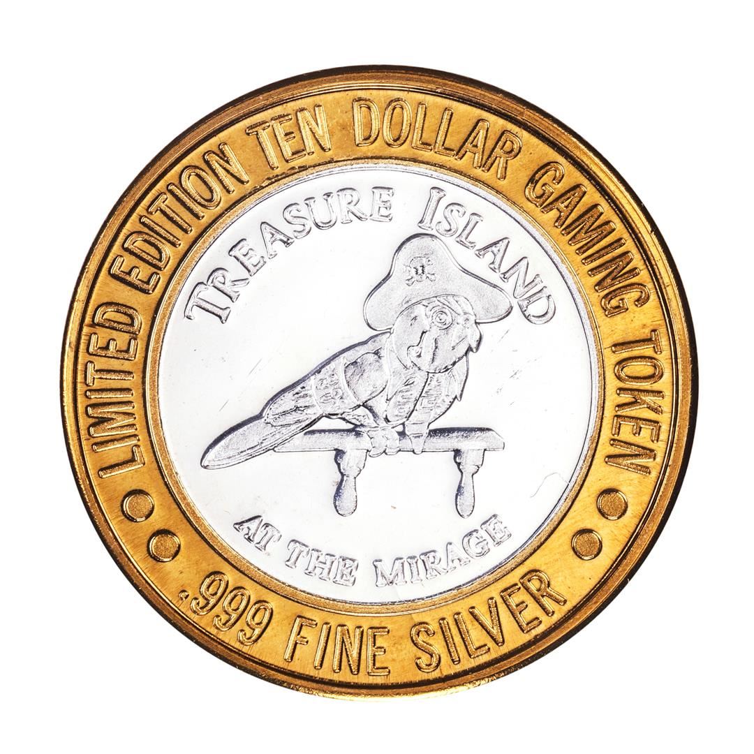 One .999 Fine Silver Treasure Island Las Vegas, Nevada $10 Limited Edition Gaming Token.