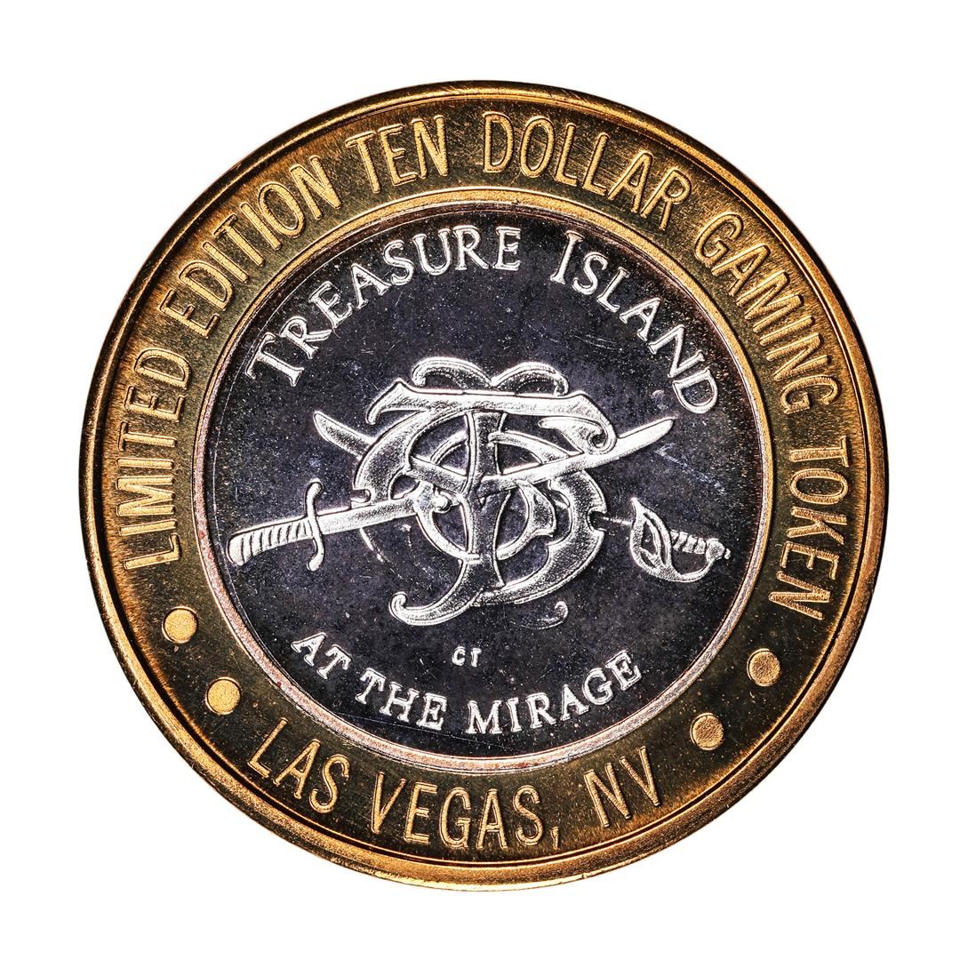 One .999 Fine Silver Treasure Island Las Vegas, Nevada $10 Limited Edition Gaming Token.