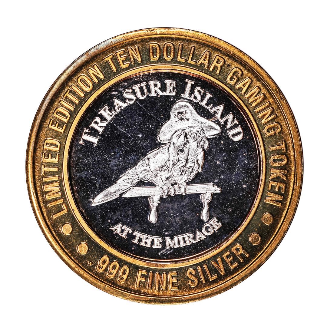 One .999 Fine Silver Treasure Island Las Vegas, Nevada $10 Limited Edition Gaming Token.