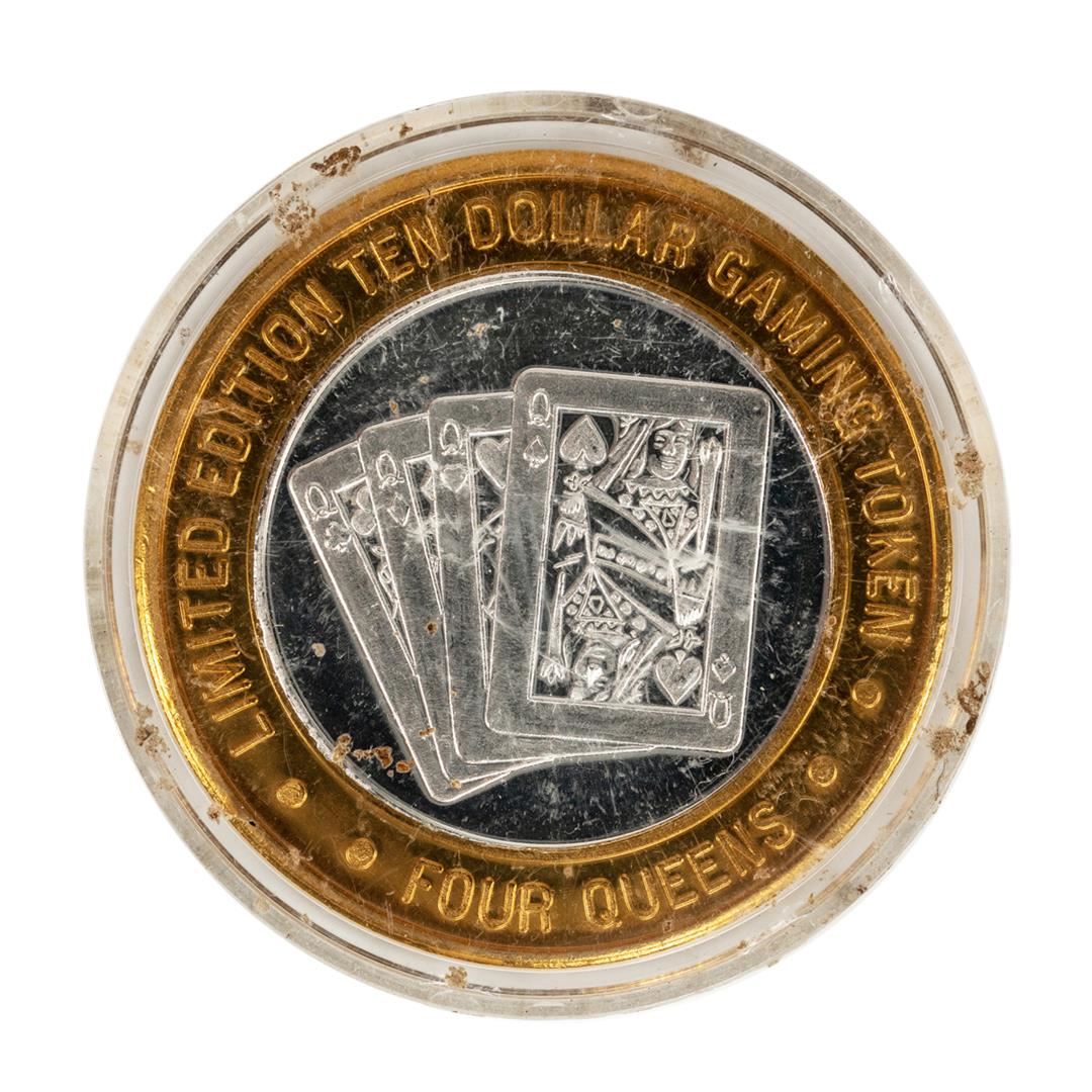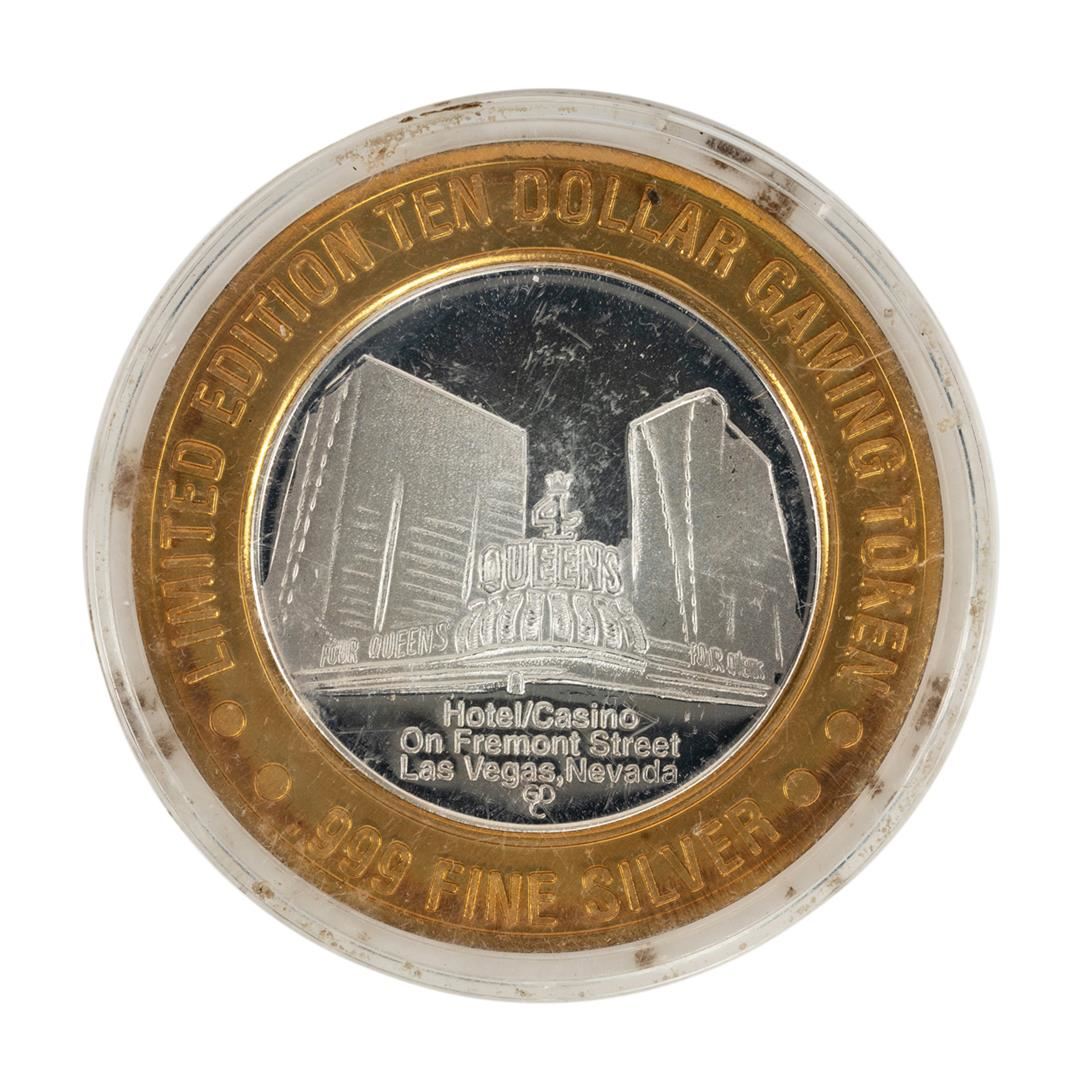 One .999 Silver 4 Queens Hotel and Casino $10 Casino Limited Edition Gaming Token.