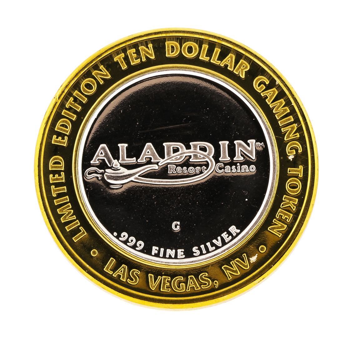 One .999 Silver Aladdin Resort Casino Las Vegas, NV $10 Casino Limited Edition Gaming Token.