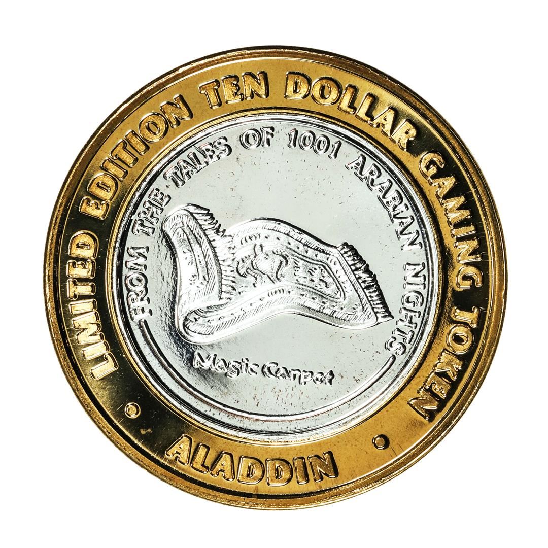 One .999 Silver Aladdin Resort Casino Las Vegas, NV $10 Limited Edition Gaming Token.