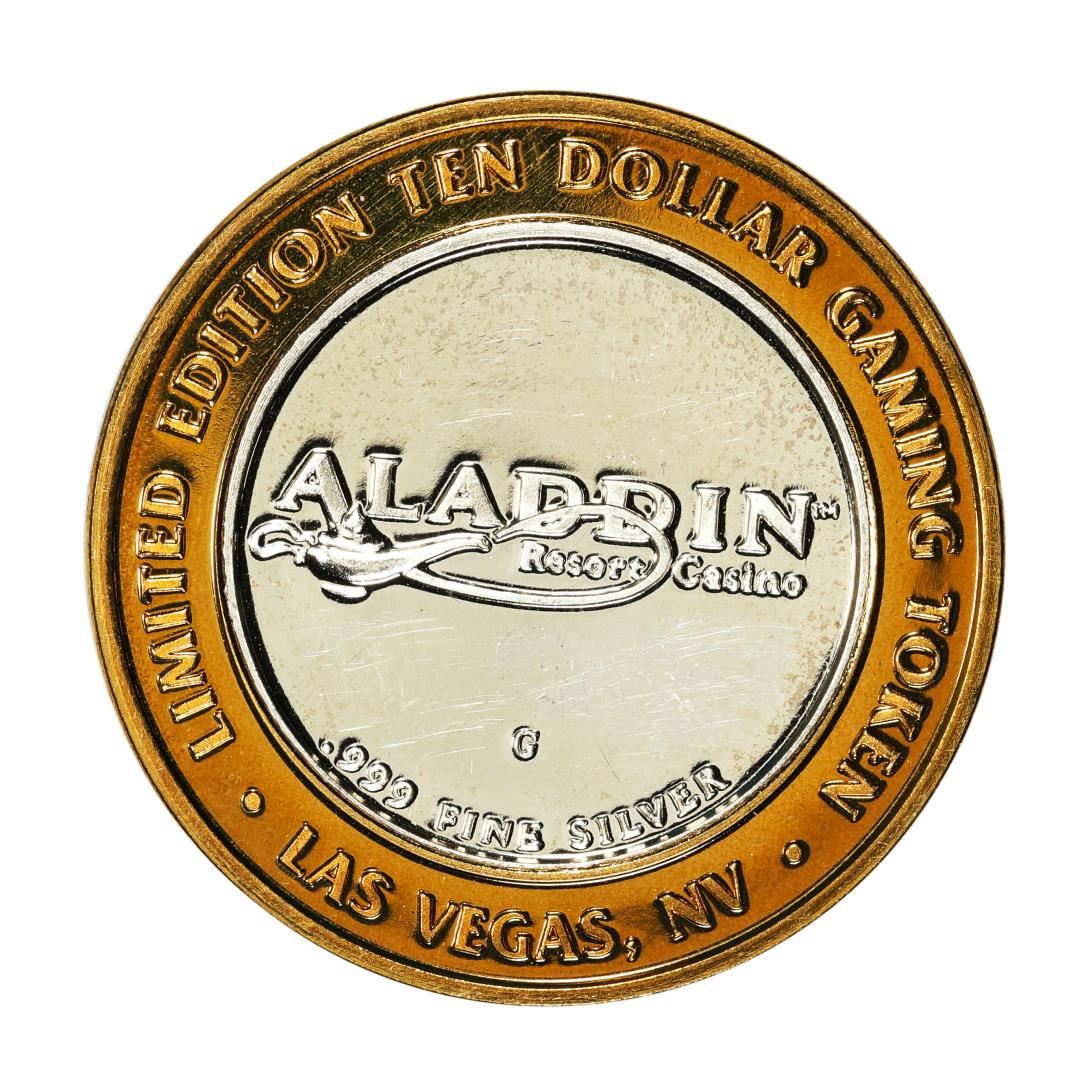 One .999 Silver Aladdin Resort Casino Las Vegas, NV $10 Limited Edition Gaming Token.