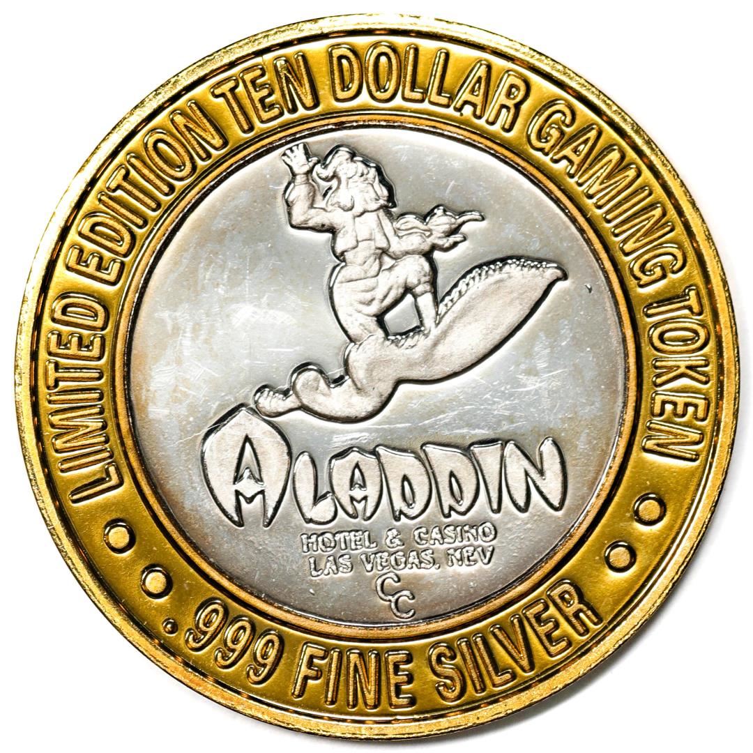 One .999 Silver Aladdin Resort Casino Las Vegas, NV $10 Limited Edition Gaming Token.