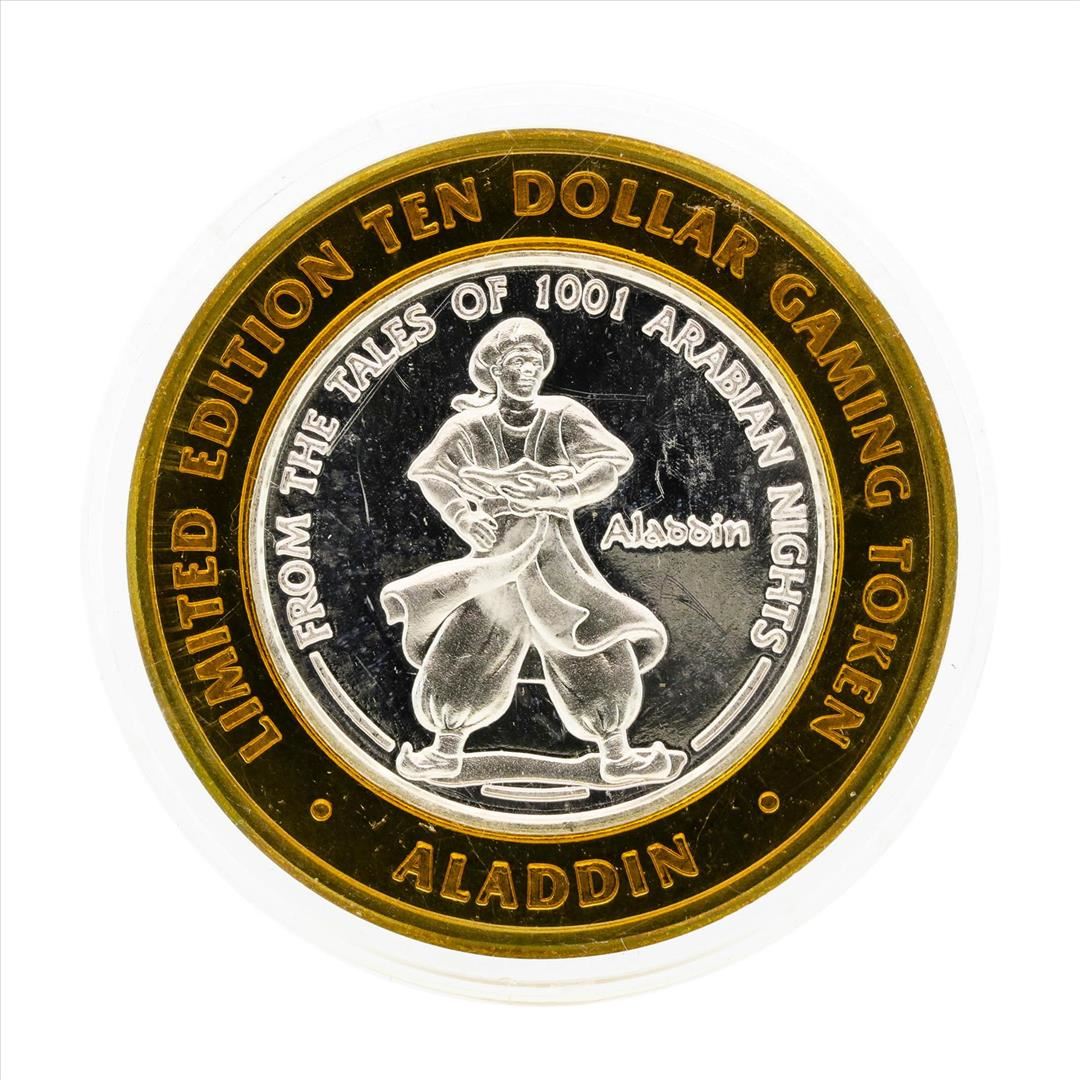 One .999 Silver Aladdin Resort and Casino $10 Casino Gaming Token Limited Edition.