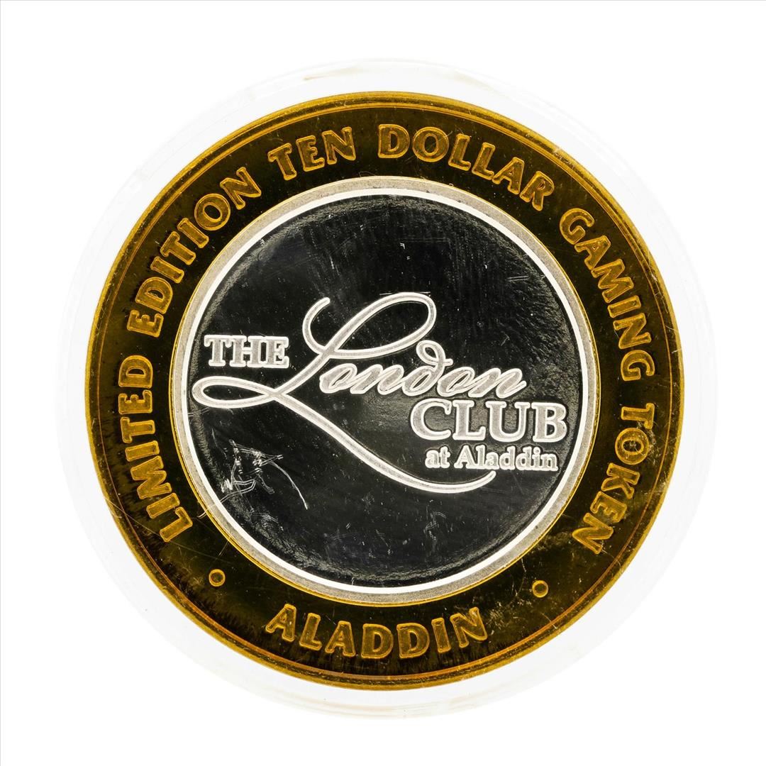 One .999 Silver Aladdin Resort and Casino $10 Casino Gaming Token Limited Edition.