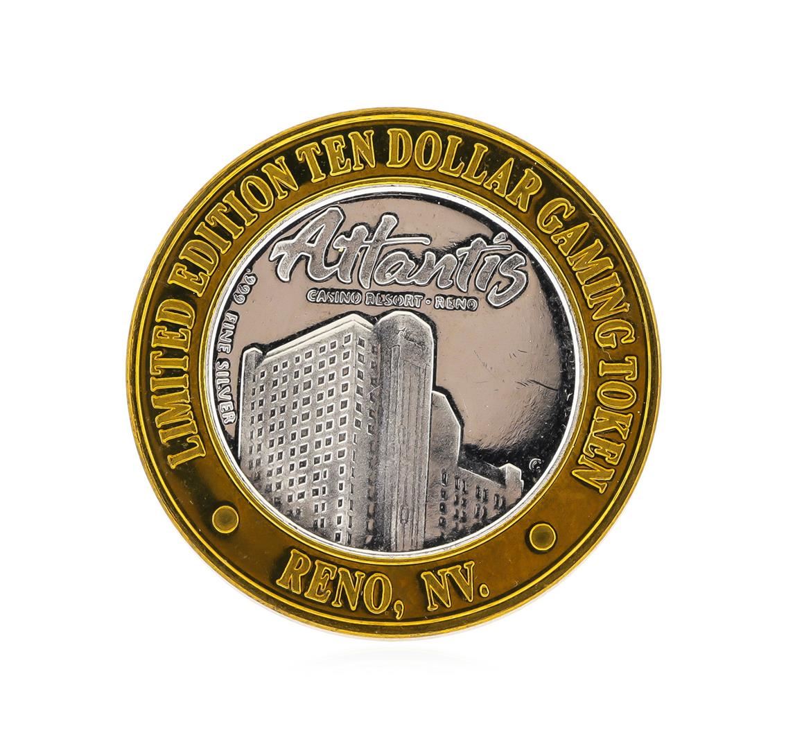 One .999 Silver Atlantis Casino Resort Reno, NV $10 Casino Gaming Token Limited Edition.