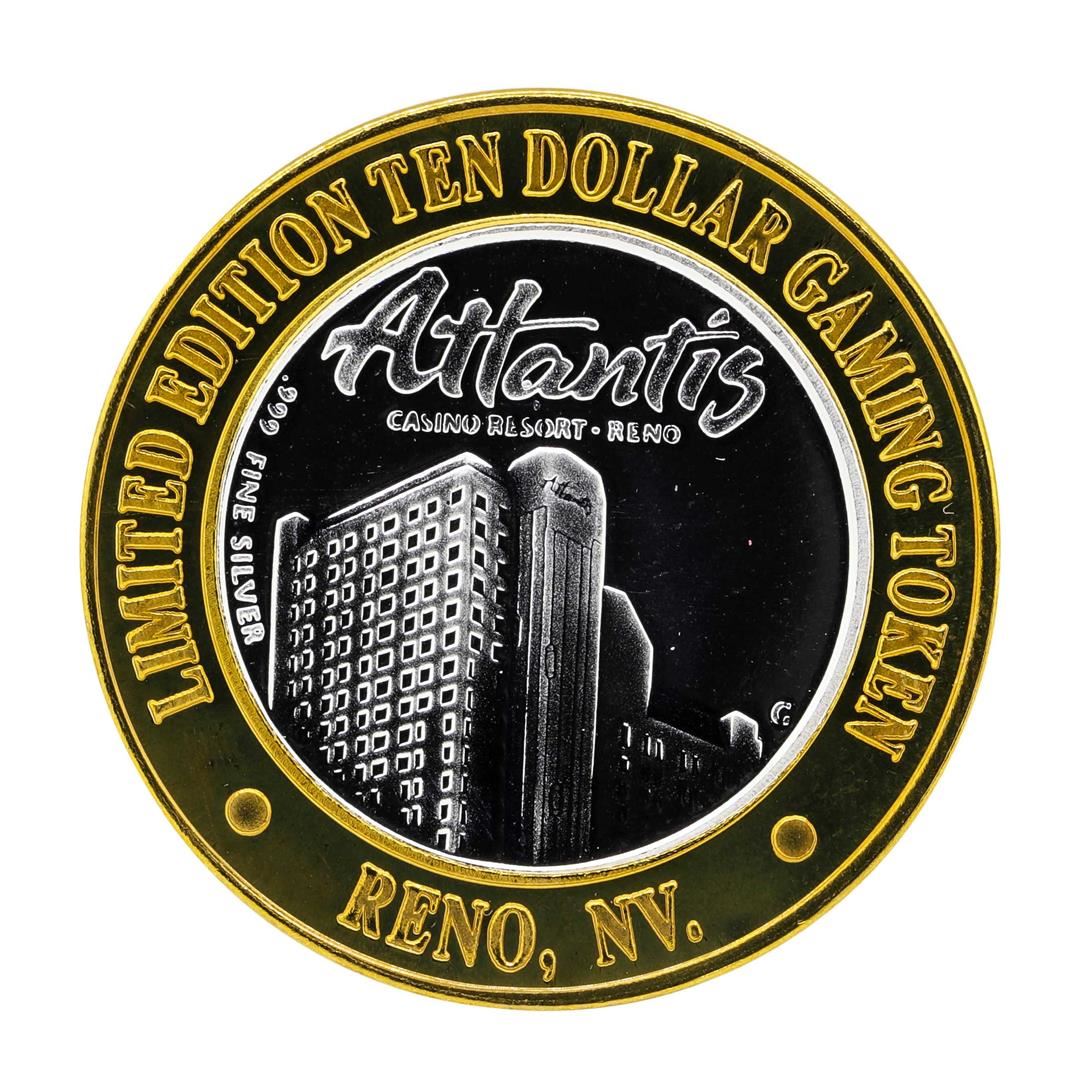 One .999 Silver Atlantis Casino Resort Reno, NV $10 Casino Limited Edition Gaming Token.