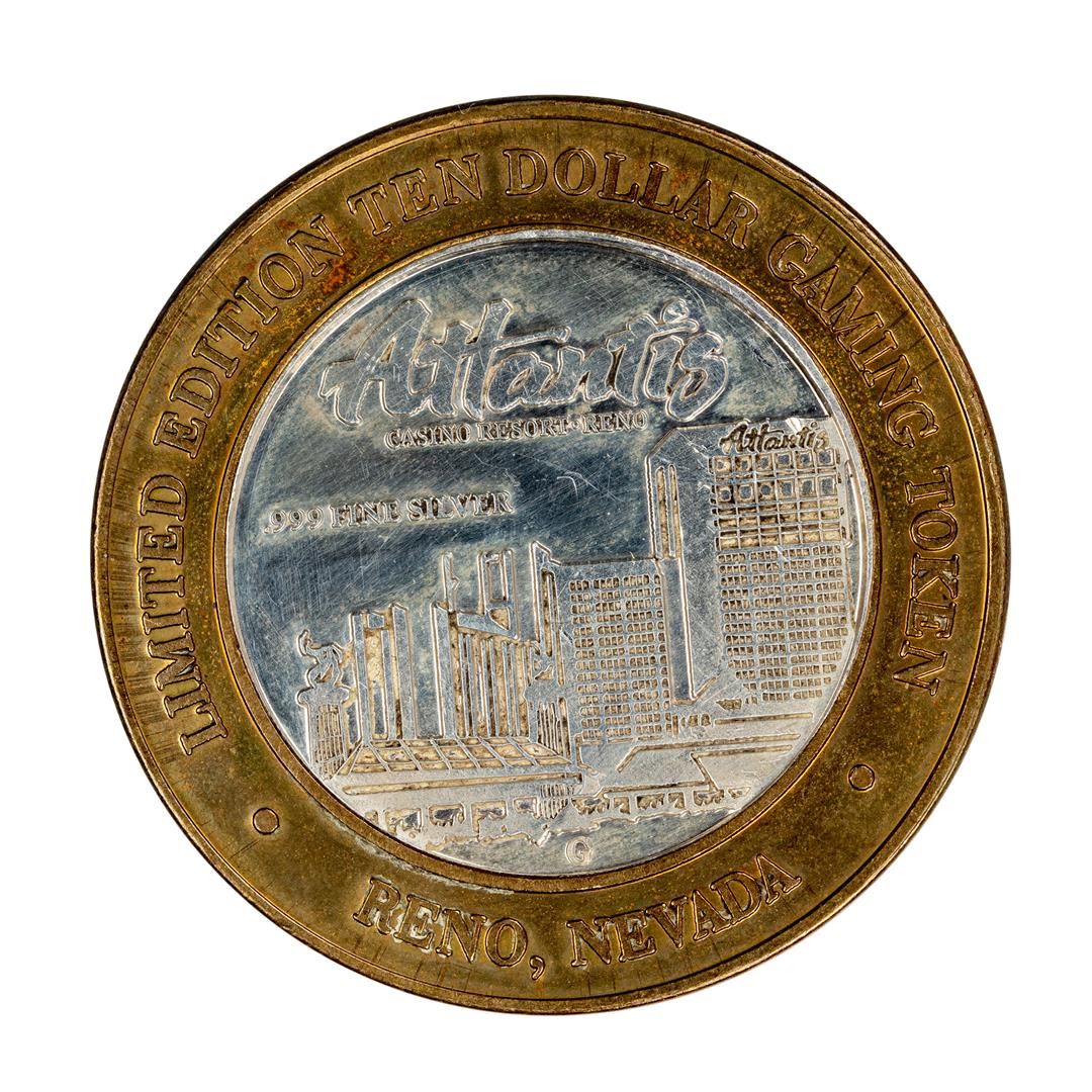 One .999 Silver Atlantis Casino Resort Reno, NV $10 Casino Limited Edition Gaming Token.