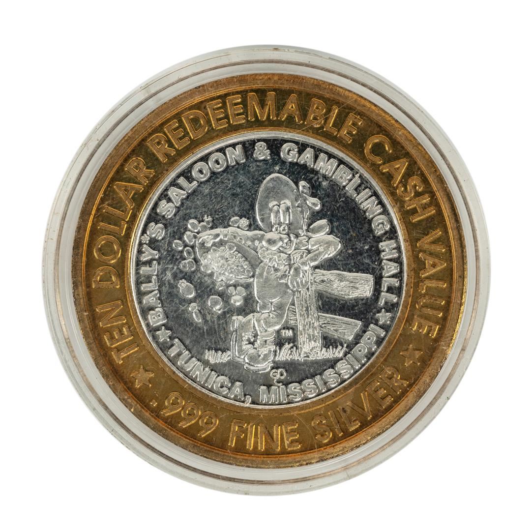 One .999 Silver Ballys Saloon & Gambling Hall $10 Casino Gaming Token Limited Edition.