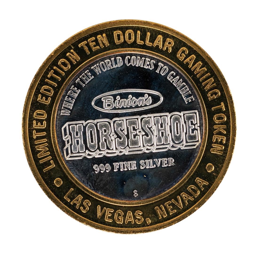 One .999 Silver Binion's Horseshoe Las Vegas, NV $10 Casino Limited Edition Gaming Token.