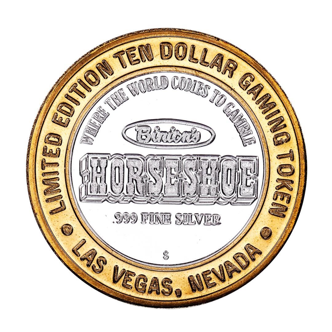 One .999 Silver Binion's Horseshoe Las Vegas, NV $10 Casino Limited Edition Gaming Token.