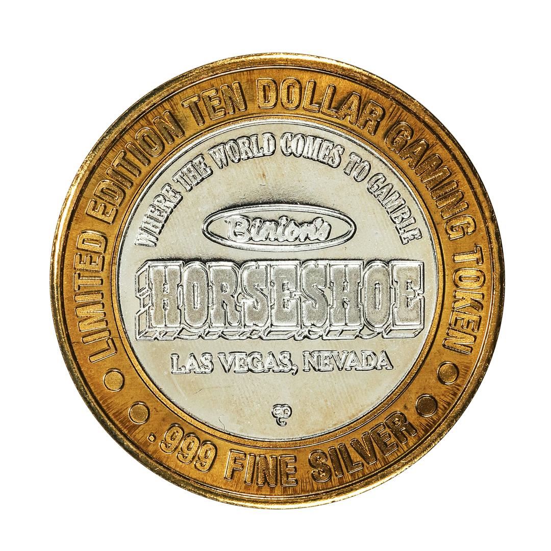 One .999 Silver Binion's Horseshoe Las Vegas, NV $10 Casino Limited Edition Gaming Token.