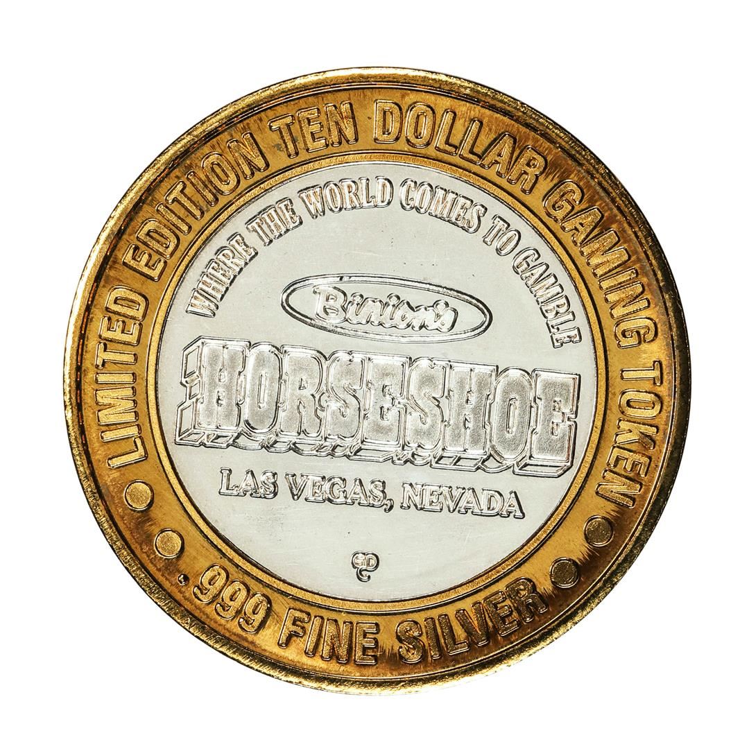 One .999 Silver Binion's Horseshoe Las Vegas, NV $10 Casino Limited Edition Gaming Token.