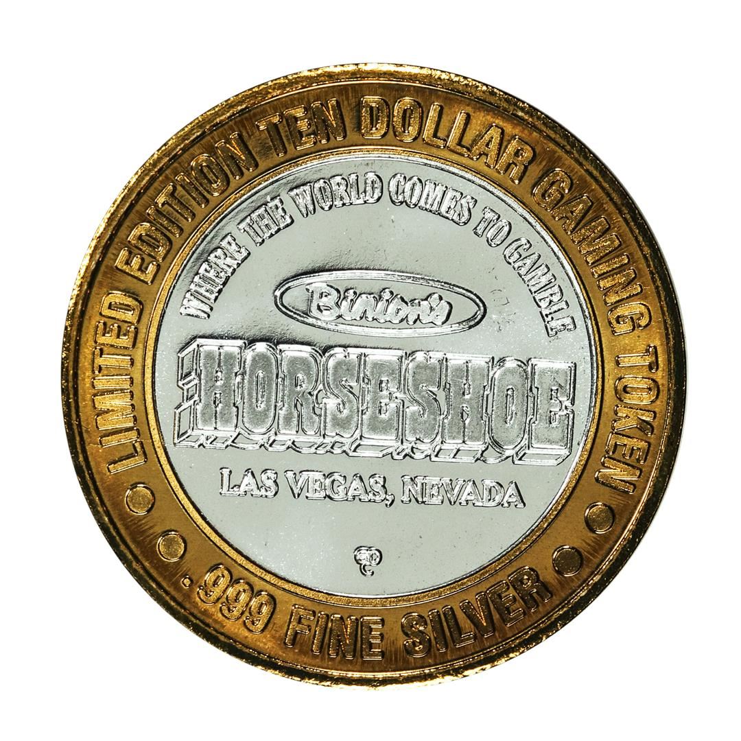 One .999 Silver Binion's Horseshoe Las Vegas, NV $10 Casino Limited Edition Gaming Token.