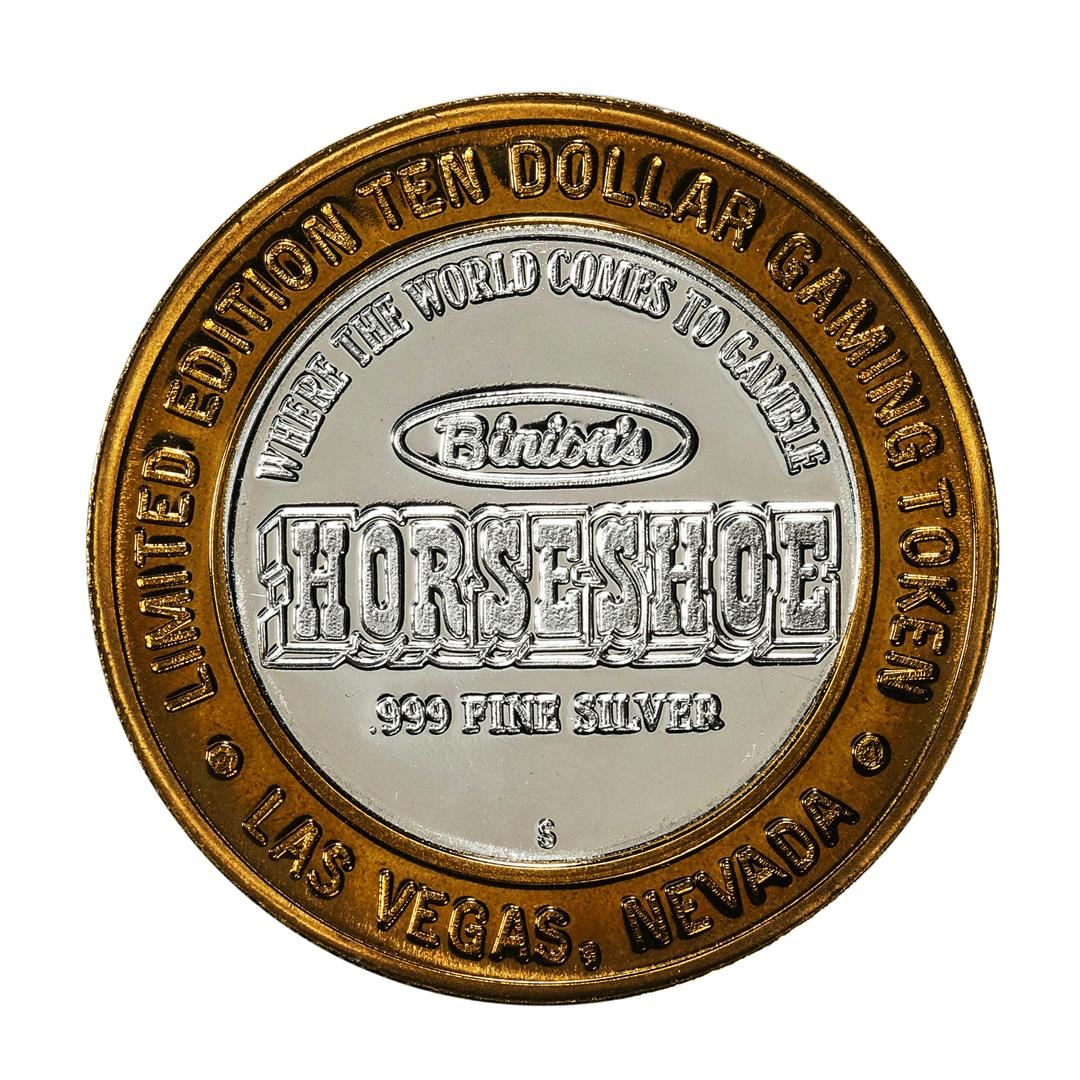 One .999 Silver Binion's Horseshoe Las Vegas, NV $10 Casino Limited Edition Gaming Token.