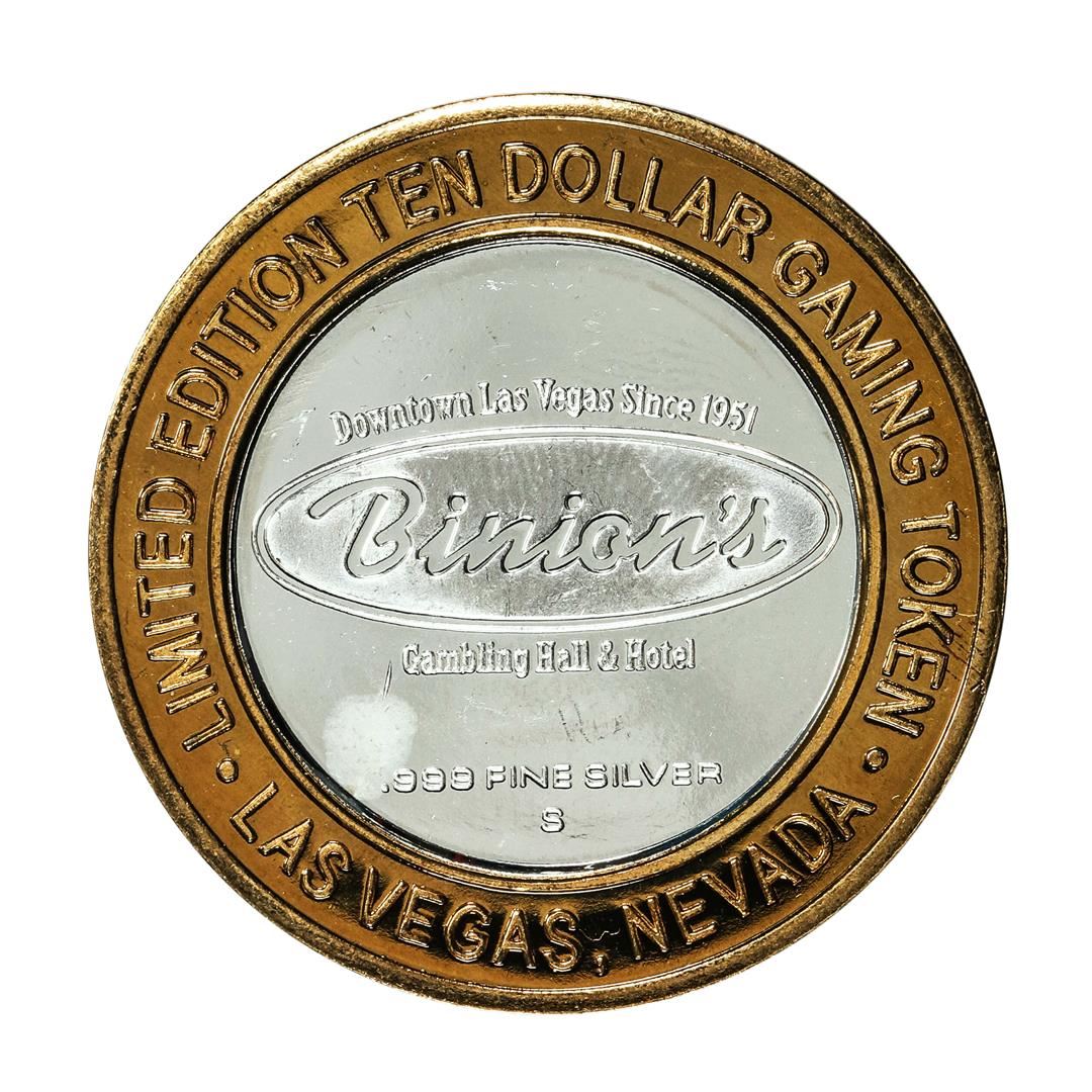 One .999 Silver Binion's Las Vegas, Nevada $10 Casino Limited Edition Gaming Token.