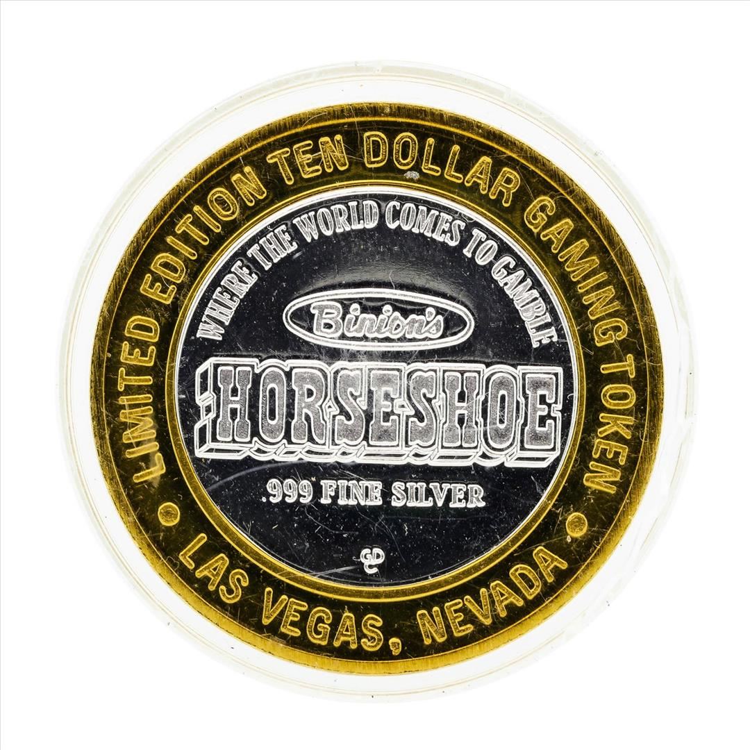 One .999 Silver Binions Horseshoe Las Vegas $10 Casino Gaming Token Limited Edition.