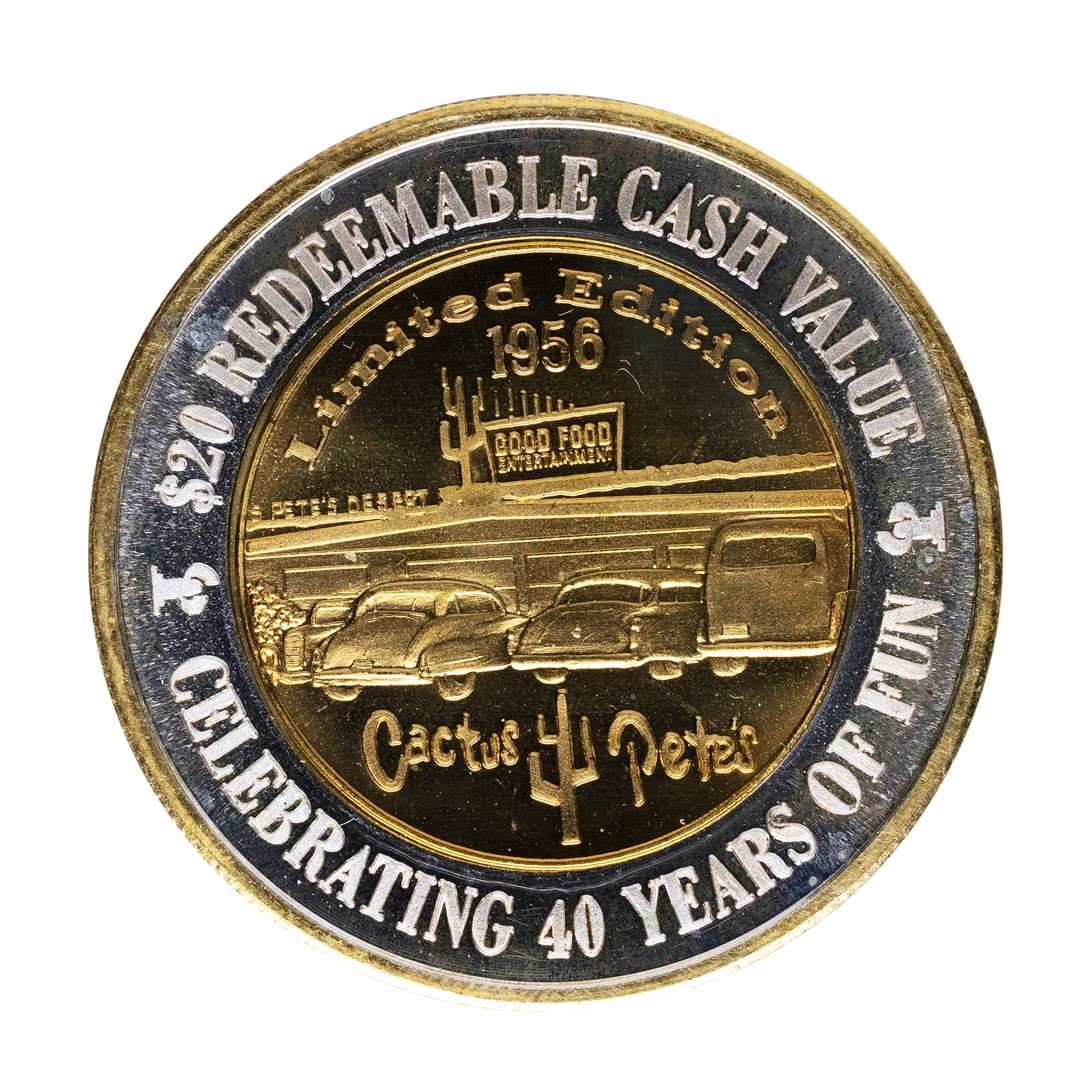 One .999 Silver Cactus Pete's Jackpot, Nevada $20 Casino Limited Edition Gaming Token.