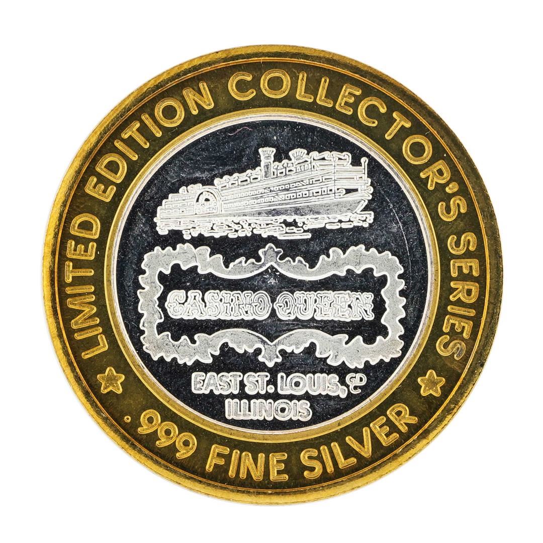 One .999 Silver Casino Queen East St. Louis, IL $10 Limited Edition Gaming Token.
