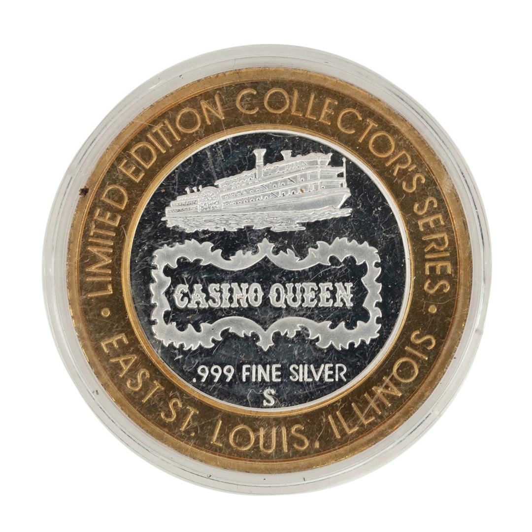 One .999 Silver Casino Queen East St. Louis, IL $10 Limited Edition Gaming Token.