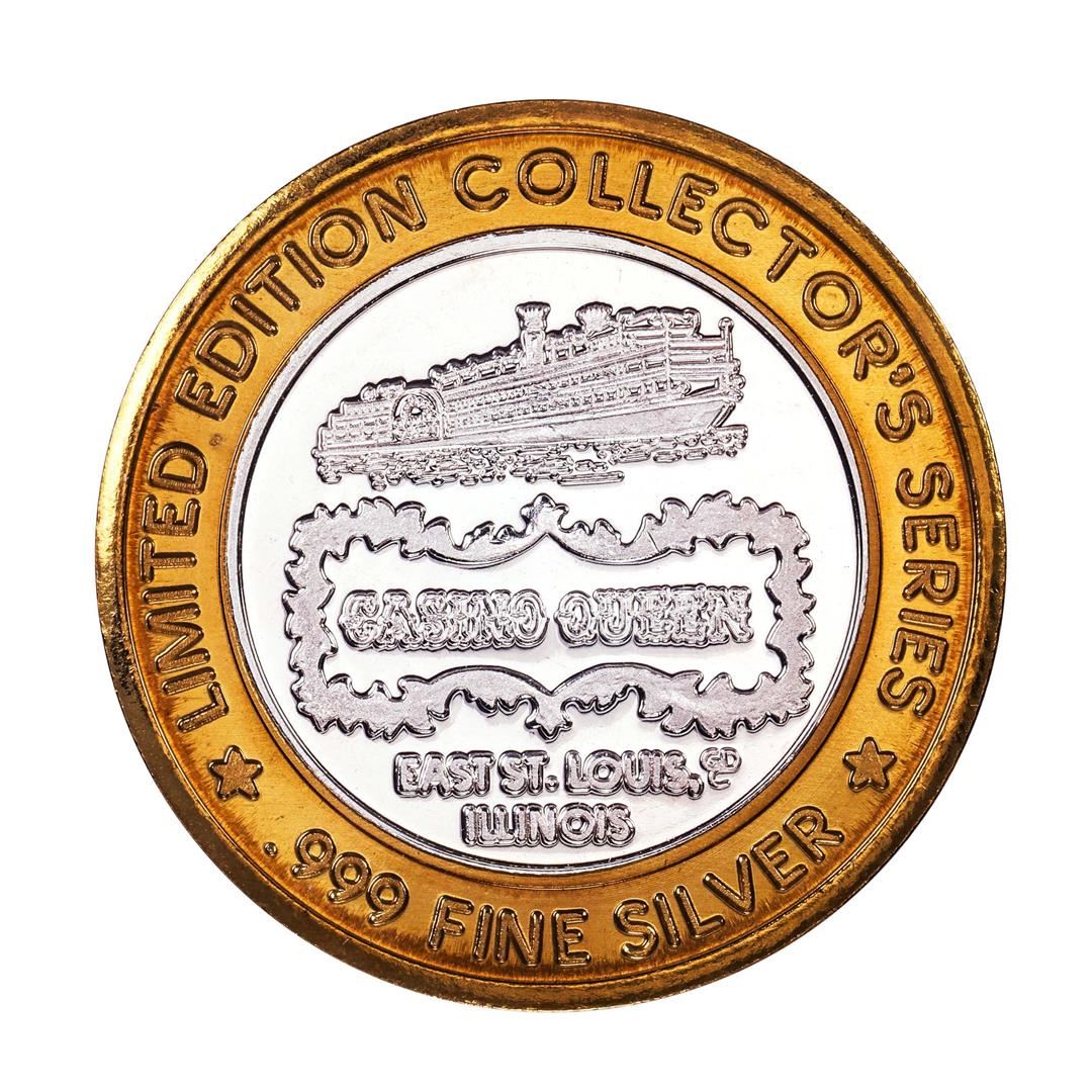 One .999 Silver Casino Queen East St. Louis, IL $10 Limited Edition Gaming Token.