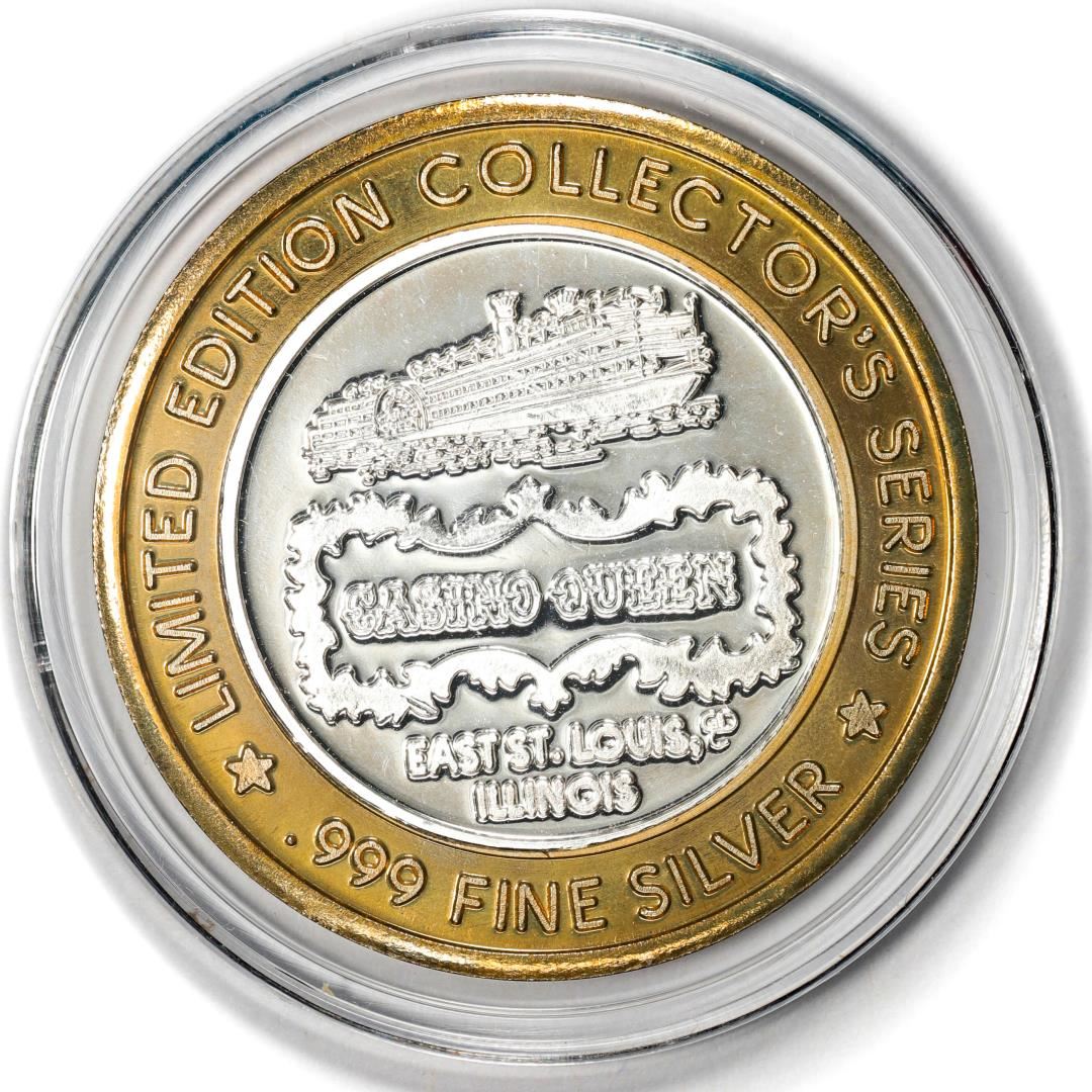 One .999 Silver Casino Queen East St. Louis, IL $10 Limited Edition Gaming Token.