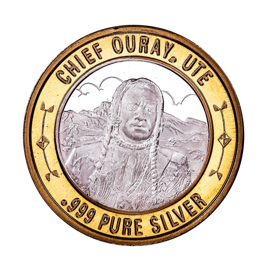One .999 Silver Chief Ouray, UTE $10 Casino Limited Native American Series Gaming Token.